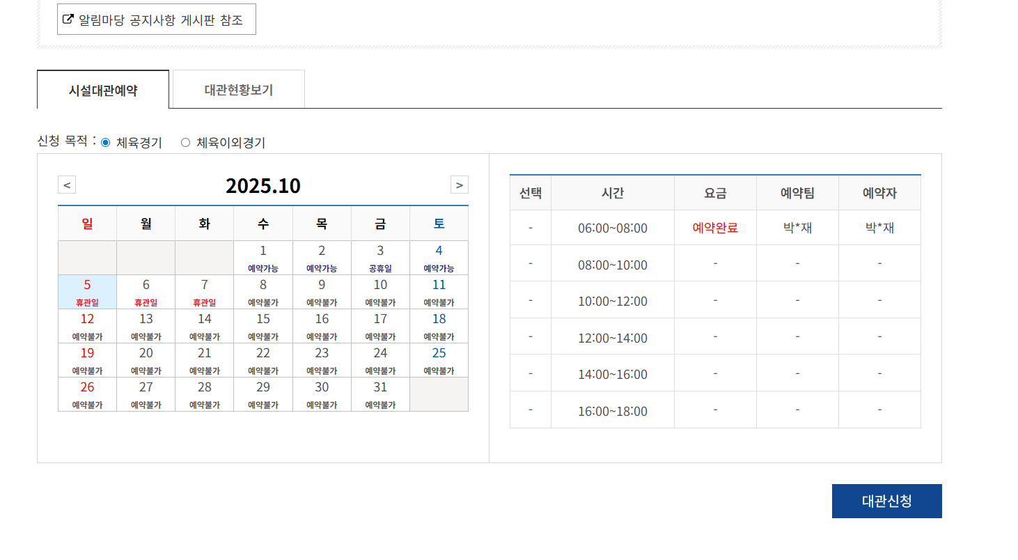 안녕하세요 축구장 예약관련 문의 입니다 추석연휴로 인해 10월 5~7일 휴관일로 되어 있고 9월 5일 10시이후 축구장 열리지도 않았는데 어떻게 예약을 할수 있었는지 궁금합니다 스크린샷 첨부해 드립니다. 확인 부탁드립니다