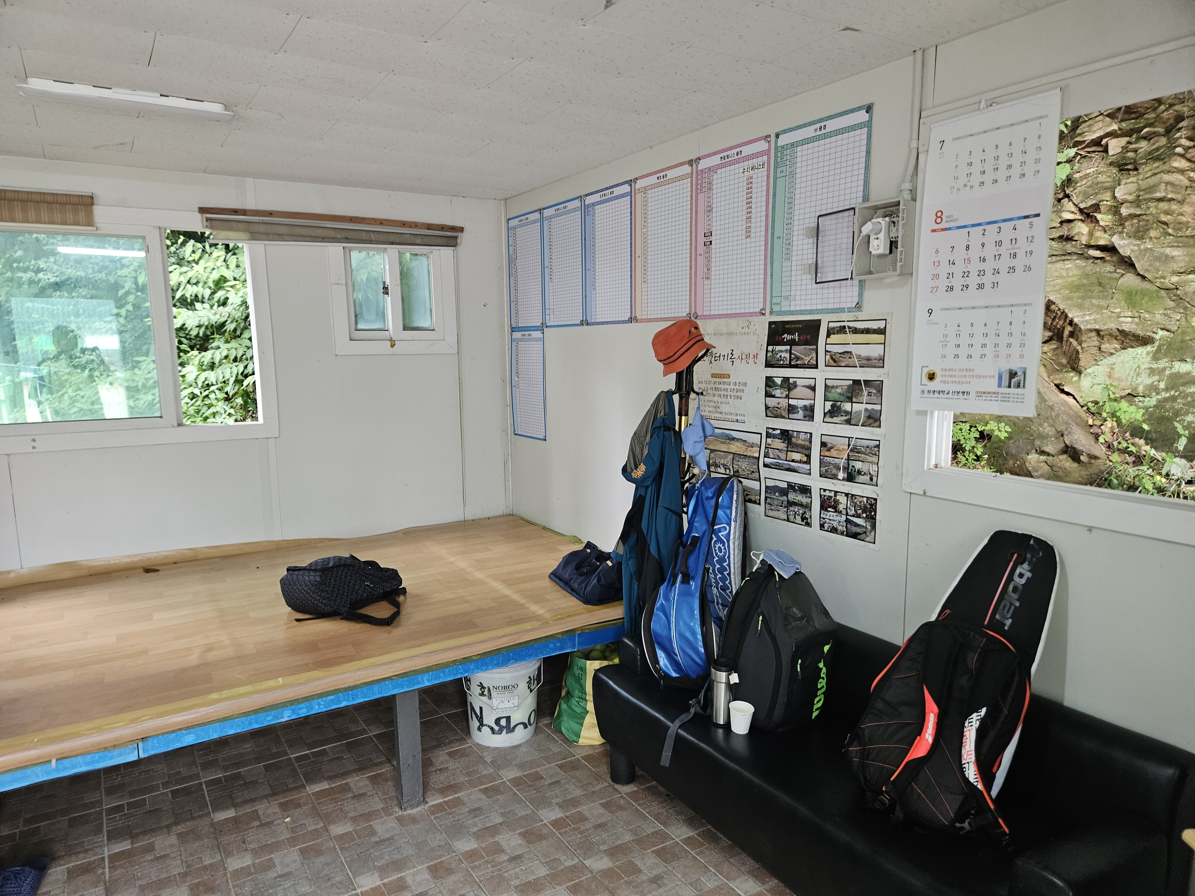 안녕하세요 군포시 한얼공원 테니스 이용 중 불편한 사항이 있어 민원 드립니다. 테니스장 이용중 테니스 동호회인중 고문이라는 분이 "이곳은 연습하는 장소가 아니라 실력을 갖춘 동회인들을 위한 게임위주의 코트이다"며 테이스장 내 안쪽 휴게시설에 이용관련 안내가 붙어있으니 참고하라며 코트를 빼앗는 상황이 발생했습니다. 실제 휴게실 안쪽을 살펴보니 동회인들의 휴식공간으로 만들어져 있고 그들만의 룰도 붙어있었습니다. 한얼 테니스장은 동호회의 공간도, 임대를 한 공간도 아닌 군포시 모두가 이용 가능한 공간으로 알고 있습니다. 일부 동호회가 본인들의 사유지인양 코트에 대해 기득권을 행세하고 이용중인 시민에게 피해를 입히는 행위는 시차원에서 관리 혹은 제재가 필요할 듯 싶습니다. 추가로 현재 동호인들의 휴게소가 되어버린 휴식공간도 동호인의 사유지인지, 그렇지 않다면 모두가 이용가능한 공간으로 개인물품은 정리하도록 조치가 필요할듯 싶습니다.