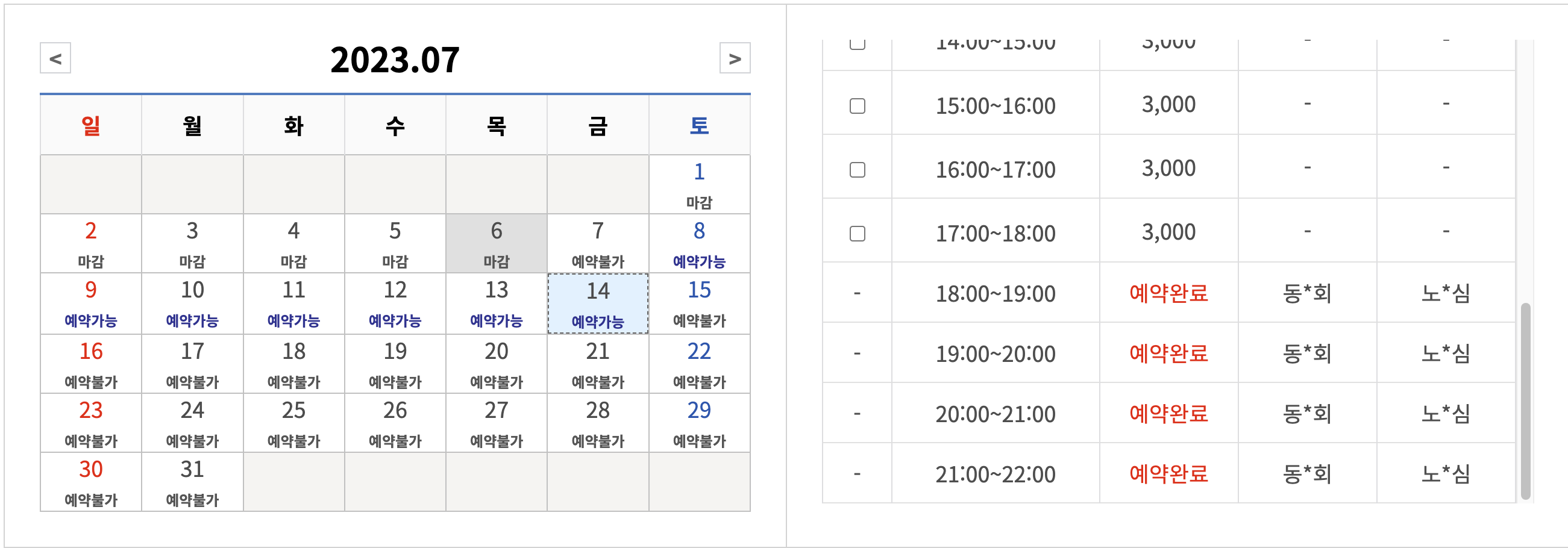 불법프로그램(매크로, 자바스크립트 등) 사용이 의심되는 분들은 지속적으로 모니터링 하고 있으며 현재 경고 조치 및 대관 취소를 하는 등 시민체육광장에서도 공정한 대관이 이루어지도록 계속해서 노력하고 있습니다. 대관 예약이 안정화될 때까지 잠시만 지켜봐 주시기를 바랍니다.
