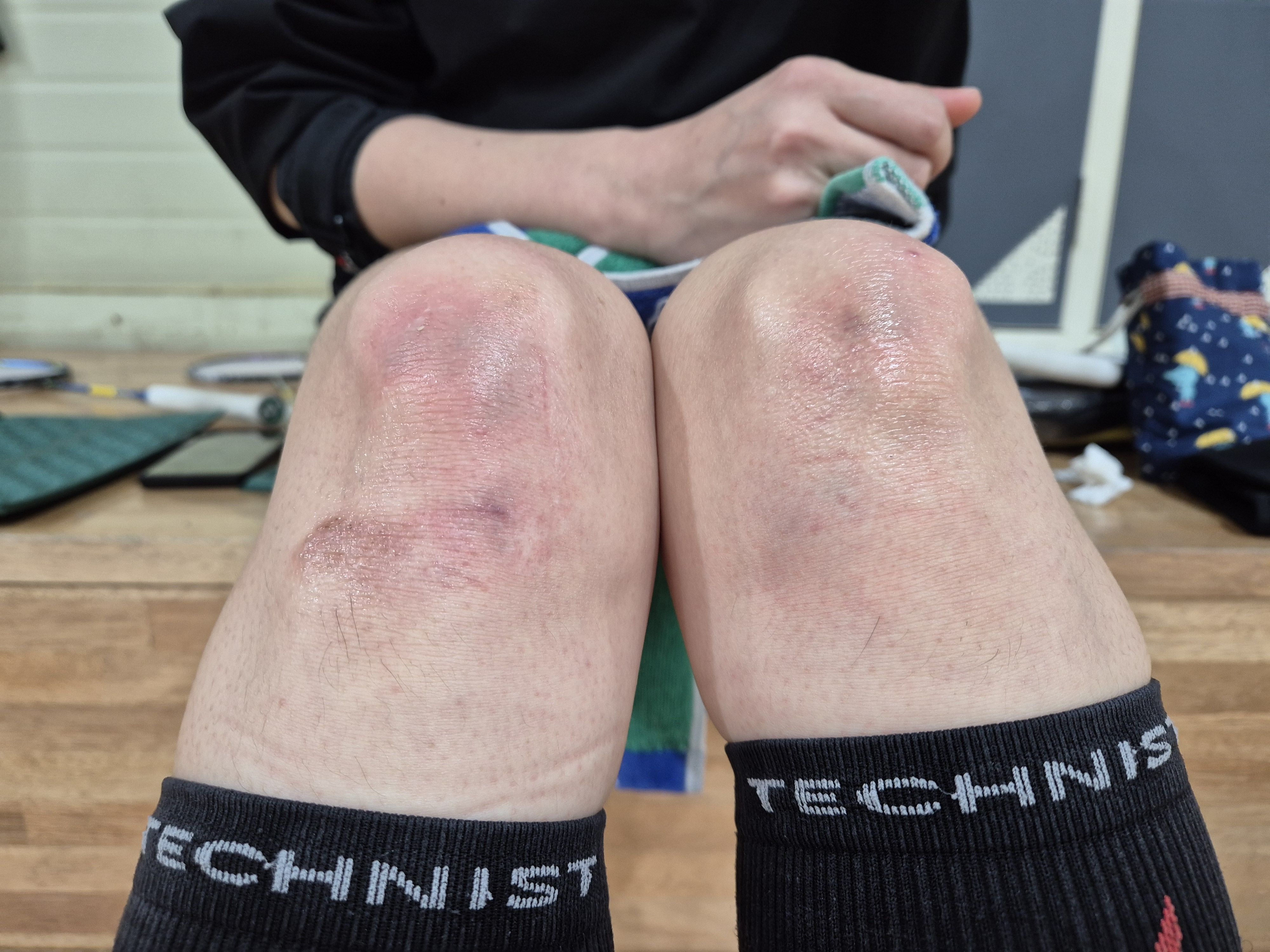 안녕하세요. 저는 시민체육광장 3체육관에서 배드민턴을 치고 있습니다. 오래전부터 2~3번 코트 정수기 있는 안쪽 마루바닥에 들뜸 현상이 있기 시작하더니 지금은 바닥이 다 갈라진 상태입니다. 갈라진 마루바닥에 걸려서 넘어지는 사람들이 많이 발생하고 있습니다. 저또한 최근에 3번코트에서만 2번이나 바닥에 걸려 넘어졌습니다. 어제 같은 경우에는 코트에 들어간지 10분도 안되어 걸려 넘어져서 첨부한 사진과 같이 무릎이 깨지고 얼굴에 타박상을 입었습니다. 이러다 더 큰 사고가 발생할 것 같습니다. 최대한 빠른 시일내에 조사 및 조치가 필요할 듯 합니다. 바쁘시겠지만 빨리 조치해 주세요. 진짜 큰일납니다!!!