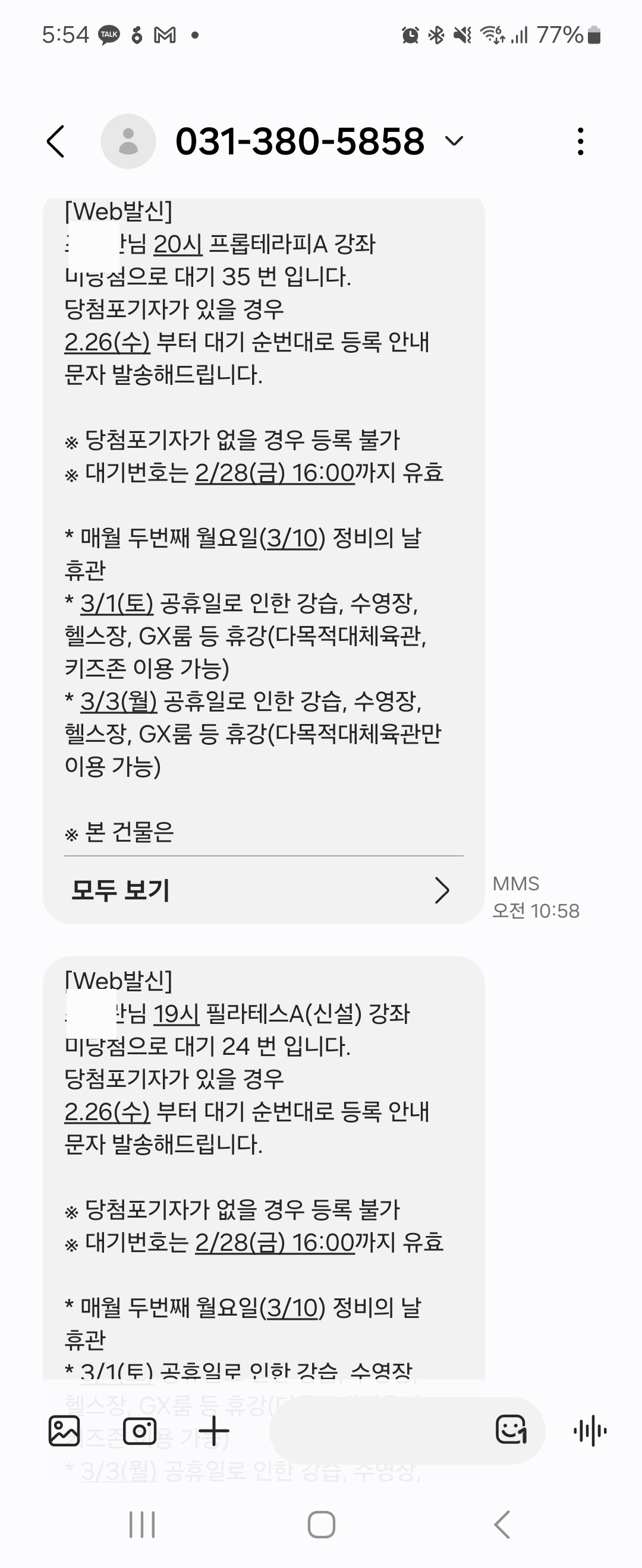 그럼에도 필라테스 강좌 개설을 희망하시는 많은 지역 주민의 의견에 따라 19시 화,금 필라테스 강좌가 개설되었고, 19시 월,목에도 필라테스 강좌 신설을 검토하고 있는 상황입니다.
