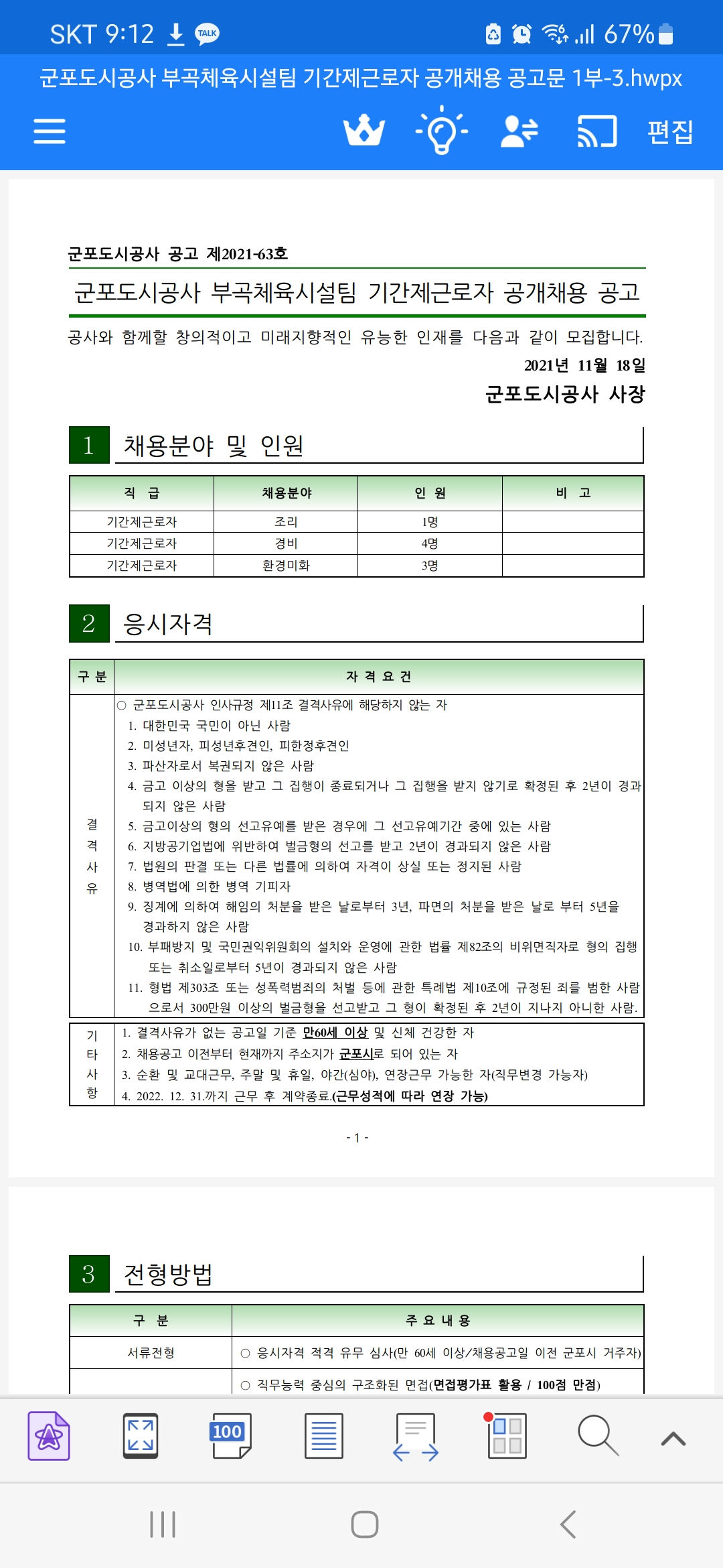 조리기간제 채용은 언제하는가요? 현재 채용공고의 날짜시기상 부곡체육 조리 인원 재채용 날짜가 곧되는걸로 알고있습니다 첨부문서 확인바랍니다 2021년 12월13일 출근 23년 12월 초 재채용공고가 올라왔어야 하는 부분 입니다 경비 ㆍ미화.조리 같은시기에 채용이되었고현시기에 있는분들은 재 채용공고가 되어있습니다 왜같은시기에 같이 채용된 조리직 채용은 없는지요 부곡 조리 기간제 재채용 공고가 올라오는지 이유를 정확히 설명 바랍니다 특별,부정채용 ,특정인 무기한 기간연장 의심과 현재 있는분 기간제 분들은 언제까지 근무가 계신건지 확실히 알려주시기 바랍니다 2021년도 기간제 채용공고에 조리직은 출근날짜가 앞 당겨져 있습니다 첨부문서 확인 바랍니다 군포 도시공사 사장님 과 인사팀 직원분 들 께서는 투명하고 공정한 인사채용 시스템을 하시기 바랍니다 .