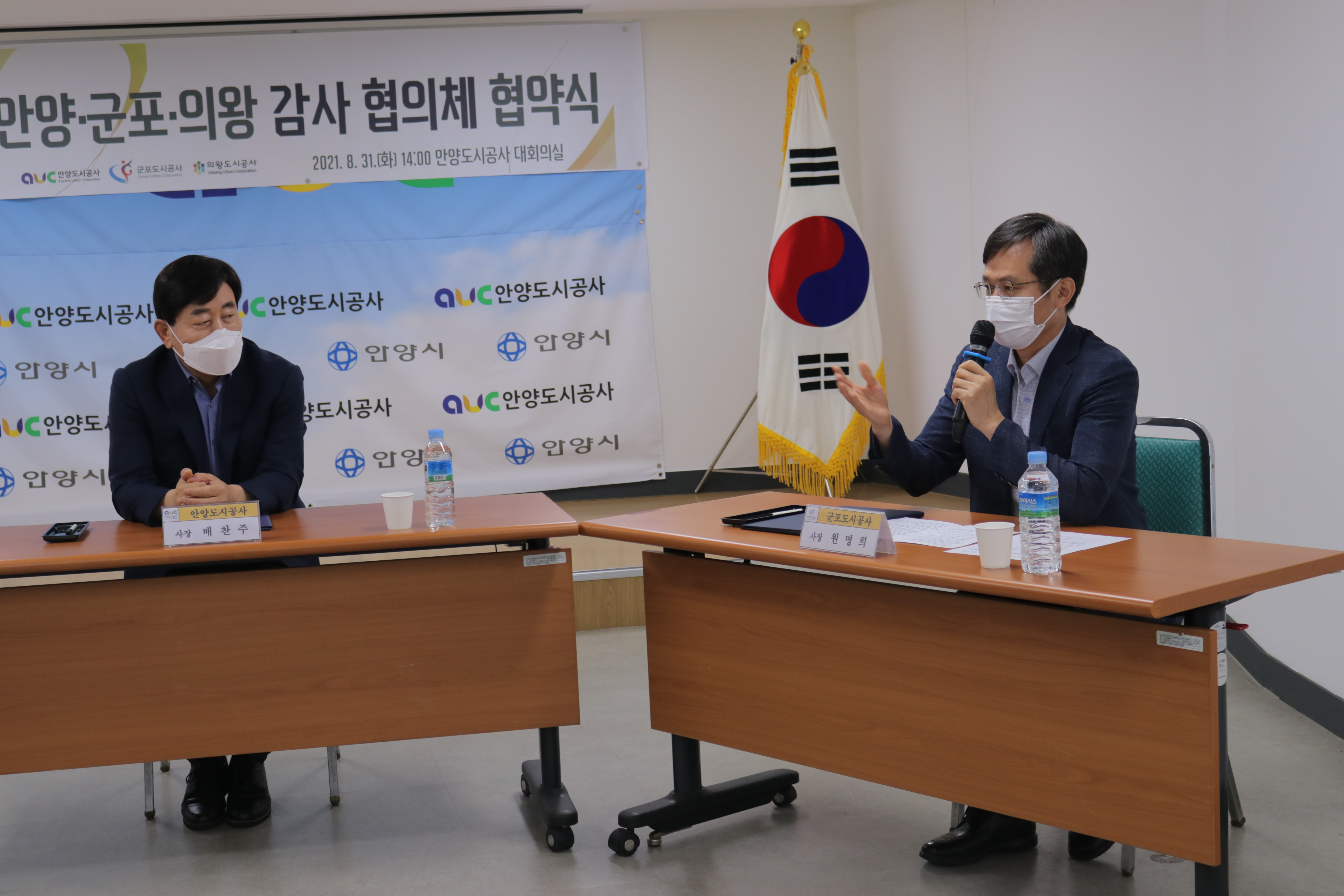 업무협약식에는 군포도시공사 사장, 안양도시공사 사장, 의왕도시공사 사장이 참석했습니다!