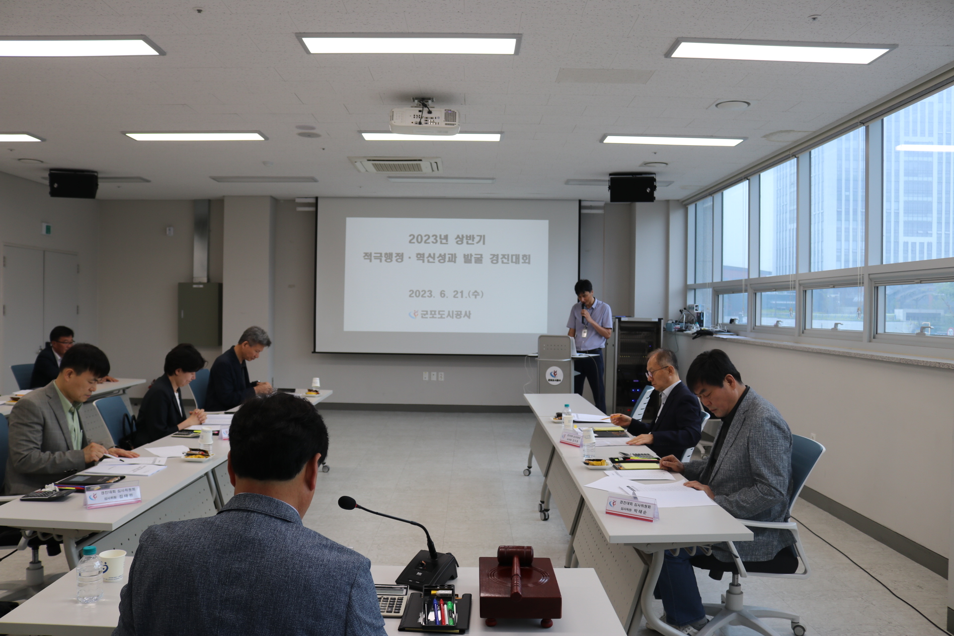 군포도시공사는 본사 2층 대회의실에서 ‘2023년상반기적극행정 혁신성과발굴경진대회’를개최했습니다.