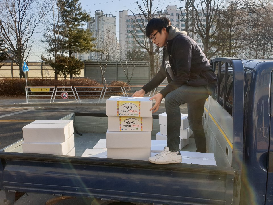 설명절 선물을 가가호호마다 배달해드렸어요.