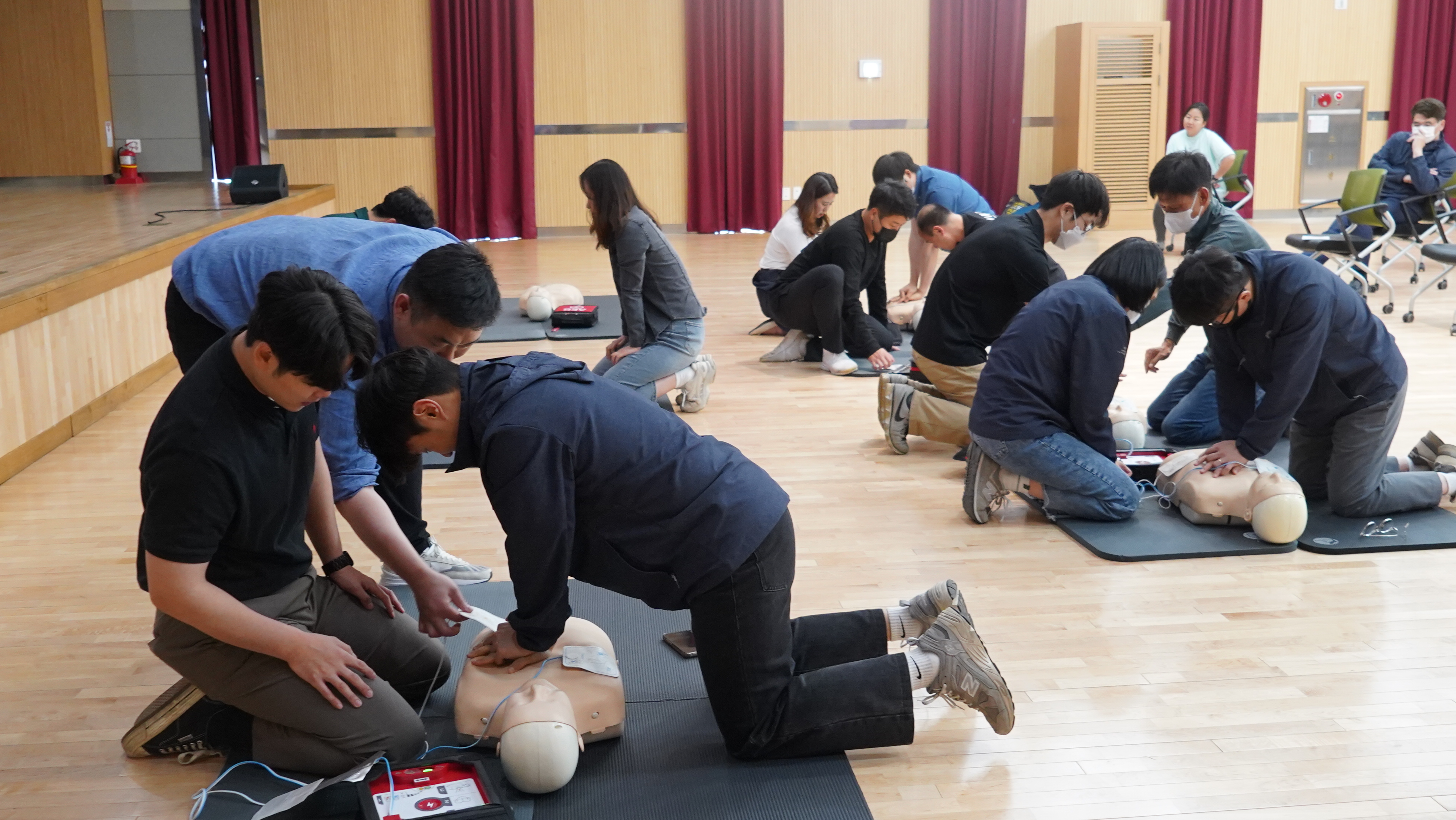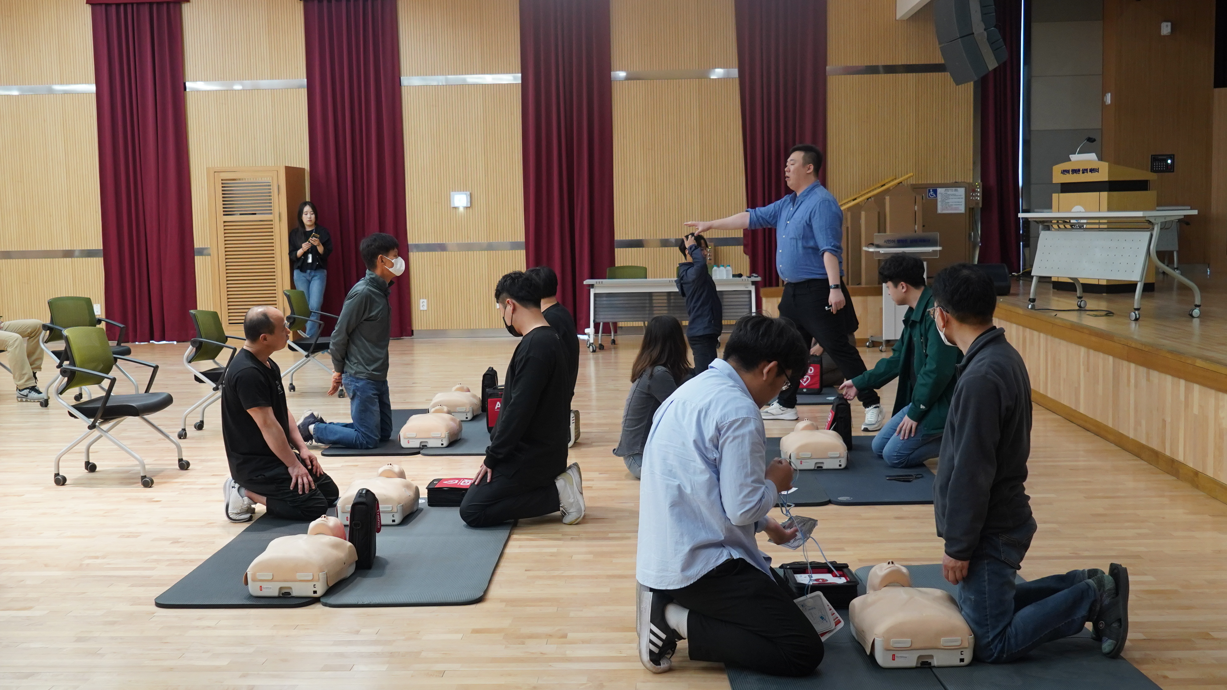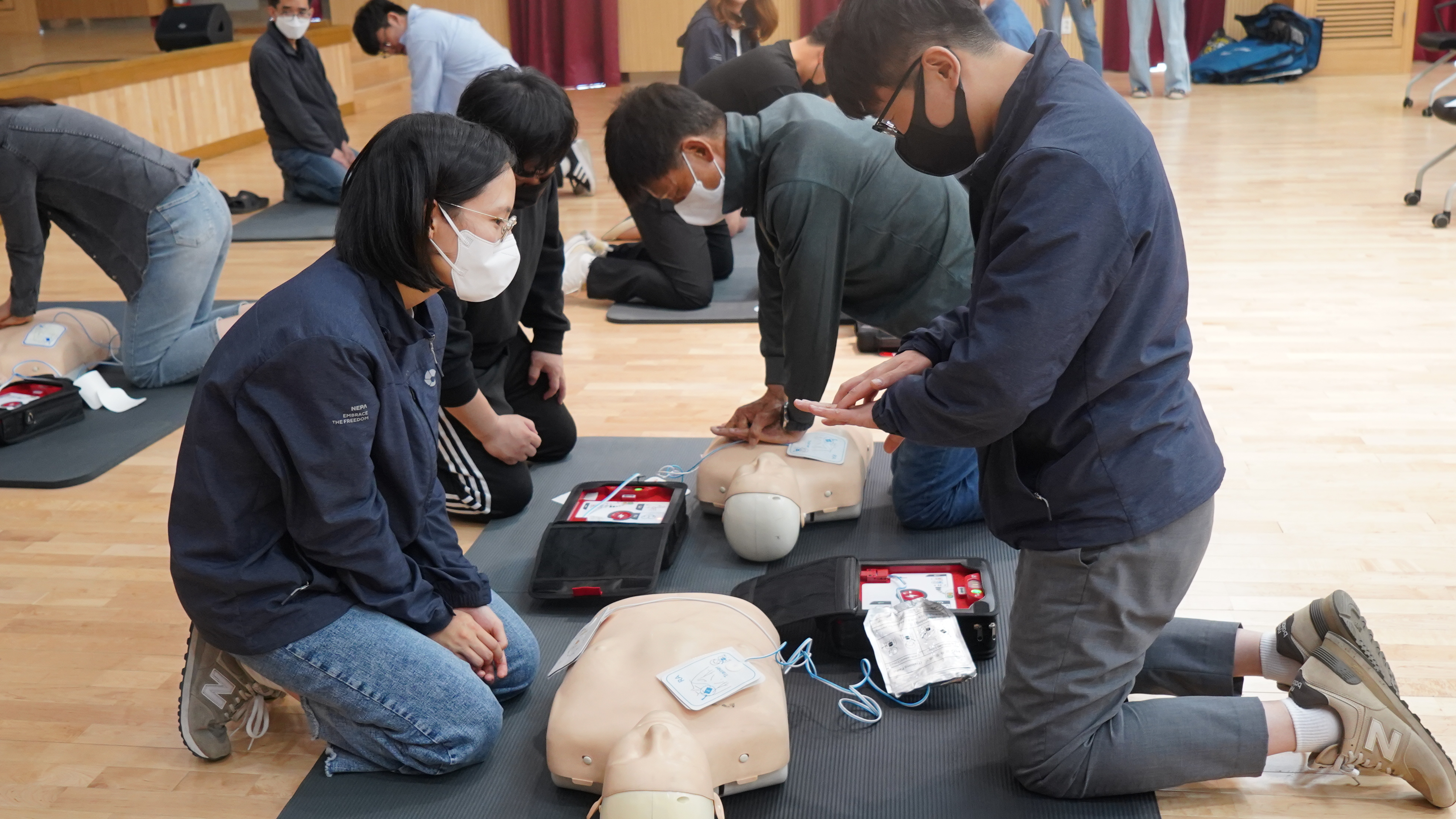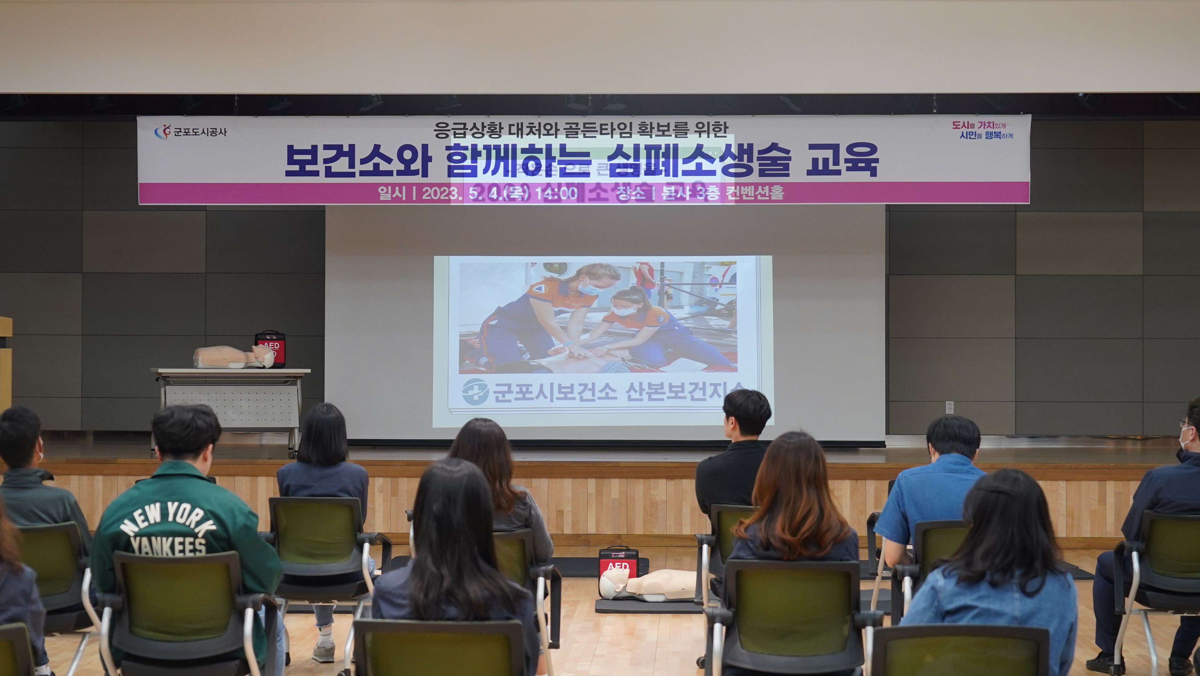 2023-05-04 심폐소생술 교육 실시 작성자 CS담당자 등록일자 2023년 5월 15일 10시 46분 19초 조회 347 군포도시공사, 보건소와 함께하는 심폐소생술 교육 실시- 응급상황 대처와 4분의 골든타임 확보 - 군포도시공사는 매월 4일 안전점검의 날과 더불어 군포시보건소와 함께 심폐소생술 및 자동심장충격기(AED) 교육을 실시하였습니다. DSC08023.JPG [ Size : 2.59MB , Down : 150 ] 미리보기 다운로드 DSC08041.JPG [ Size : 3.35MB , Down : 147 ] 미리보기 다운로드 DSC08069.JPG [ Size : 2.98MB , Down : 144 ] 미리보기 다운로드 DSC08084.JPG [ Size : 3.08MB , Down : 155 ] 미리보기 다운로드 목록보기