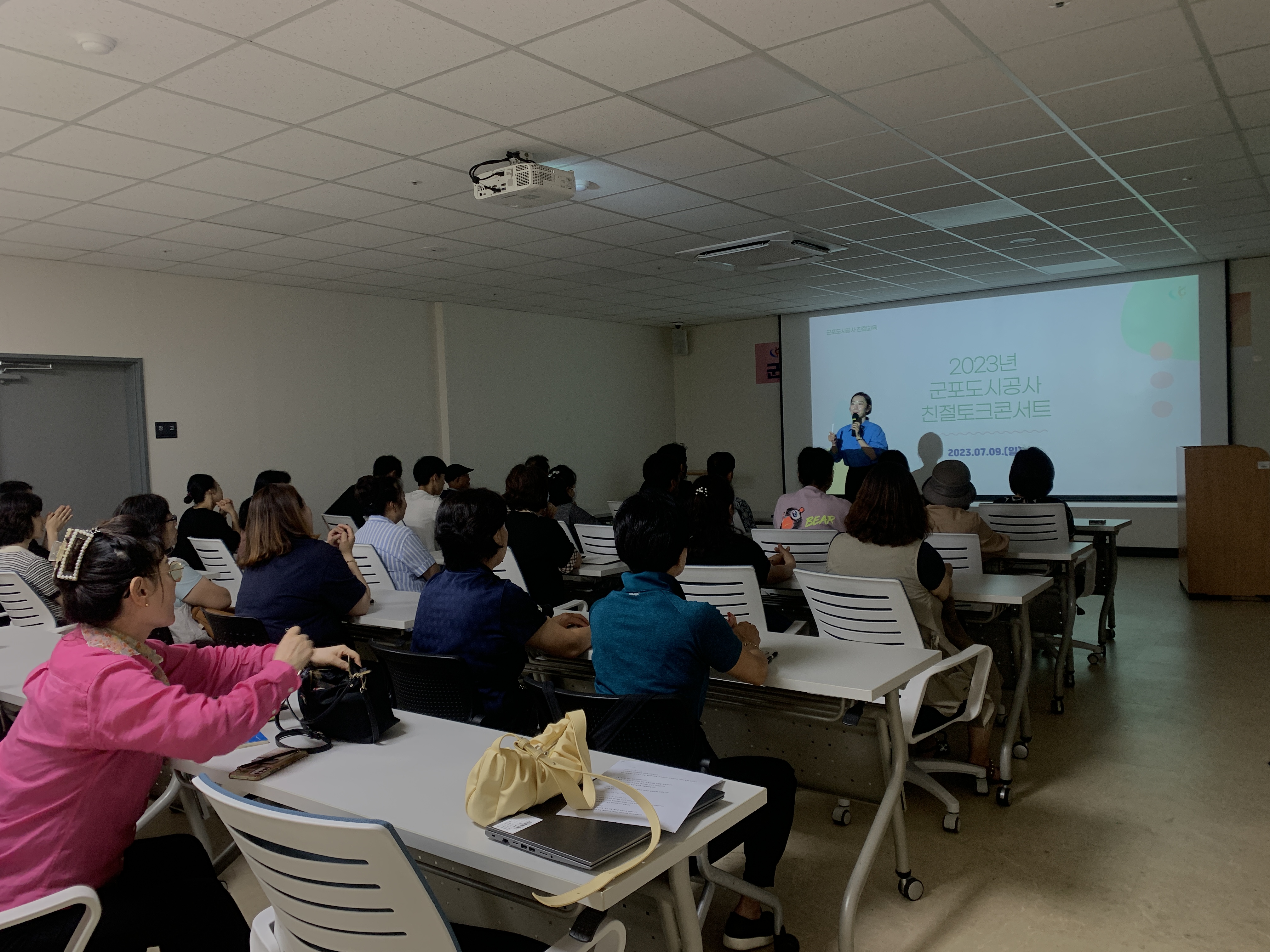 이번 교육은 CS 전문 강사를 초빙하여 △기본 민원 응대 요령 △상황별 고객 응대 사례 △악성 민원인 고객 이해 △내부 직원 스트레스 해소 방법 등 직원의 고객 응대 역량 강화를 위한 전문 교육을 진행했습니다.