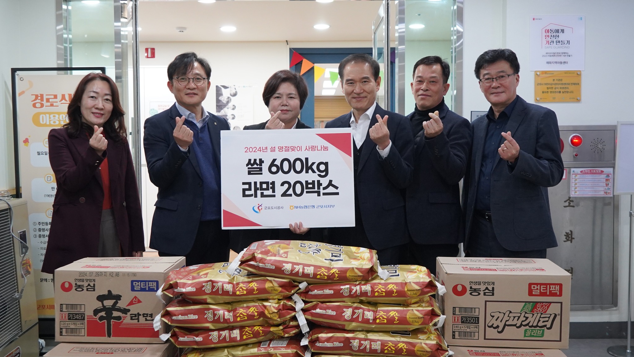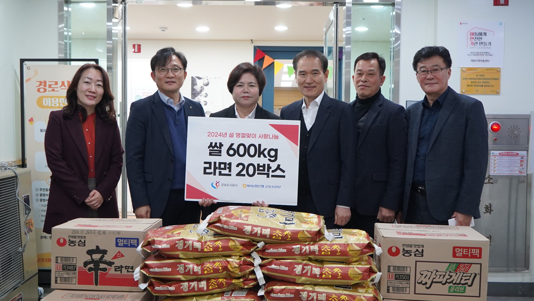 2024-02-07 설 명절맞이 쌀 나눔 행사 작성자 CS담당자 등록일자 2024년 7월 3일 15시 32분 18초 조회 222 <군포도시공사-NH농협군포시지부>설 명절맞이‘이웃사랑 나눔경영’실천군포도시공사는 설 명절을 맞아 NH농협은행 군포시지부와 함께‘매화지역아동센터’와 ‘솔 복지재단’에 각 쌀 30포(300kg)씩 총 쌀 60포(600kg)를 전달하였습니다. 426163210_412777404626501_5074212061521221602_n.jpg [ Size : 511.17KB , Down : 134 ] 미리보기 다운로드 426073313_412777381293170_5689788696579538885_n.jpg [ Size : 509.1KB , Down : 143 ] 미리보기 다운로드 목록보기