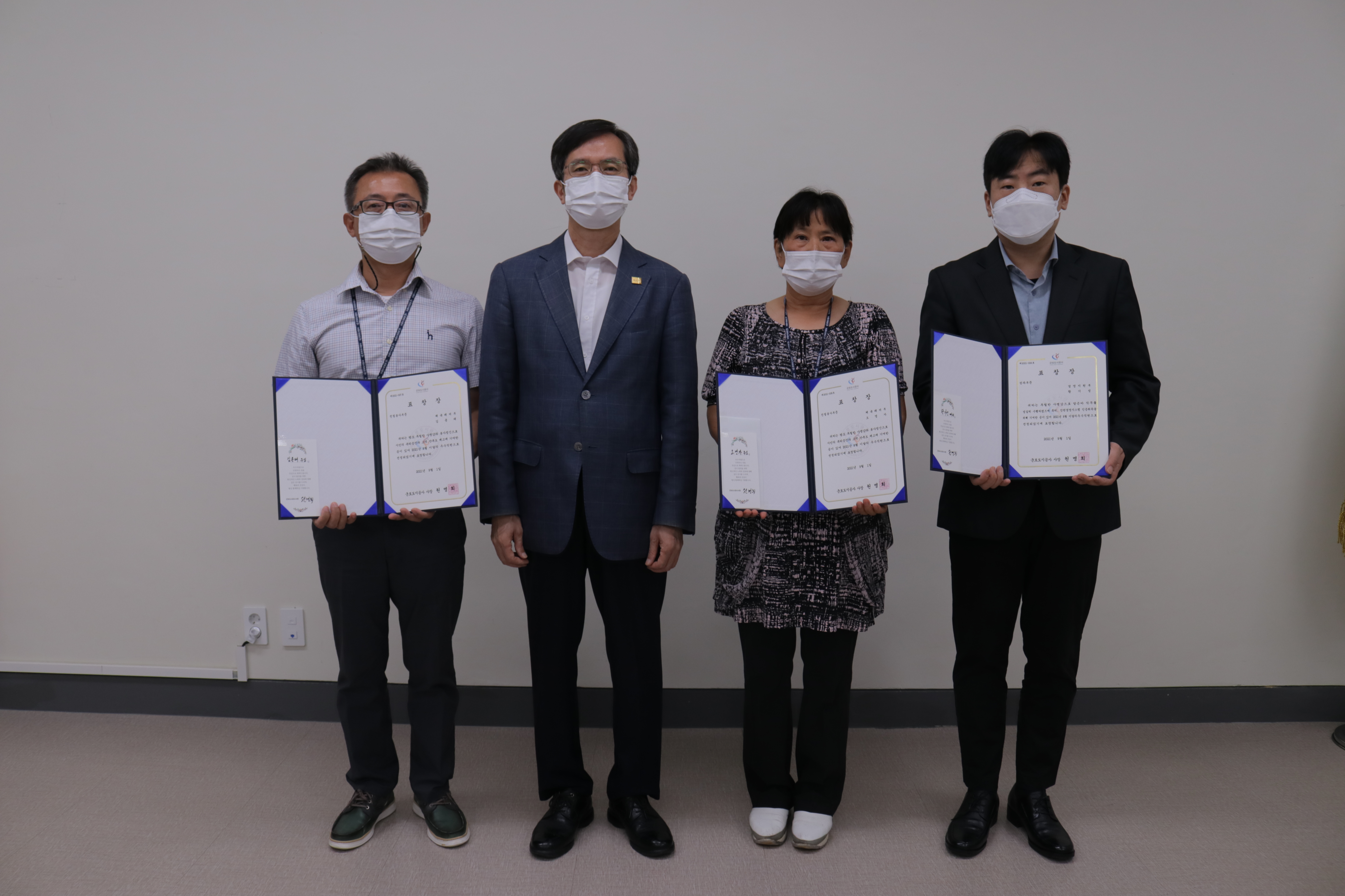 인사총무팀의 황기성대리는 공사 최초로 인권경영시스템인증을 취득하는데 기여하였으며, 체육레저부의 김용태주임과 오영자주임은 체육시설관리 및 환경개선을 위해 노력하여 시민들에게 사랑받는 군포도시공사 이미지 형성에 기여하였습니다.