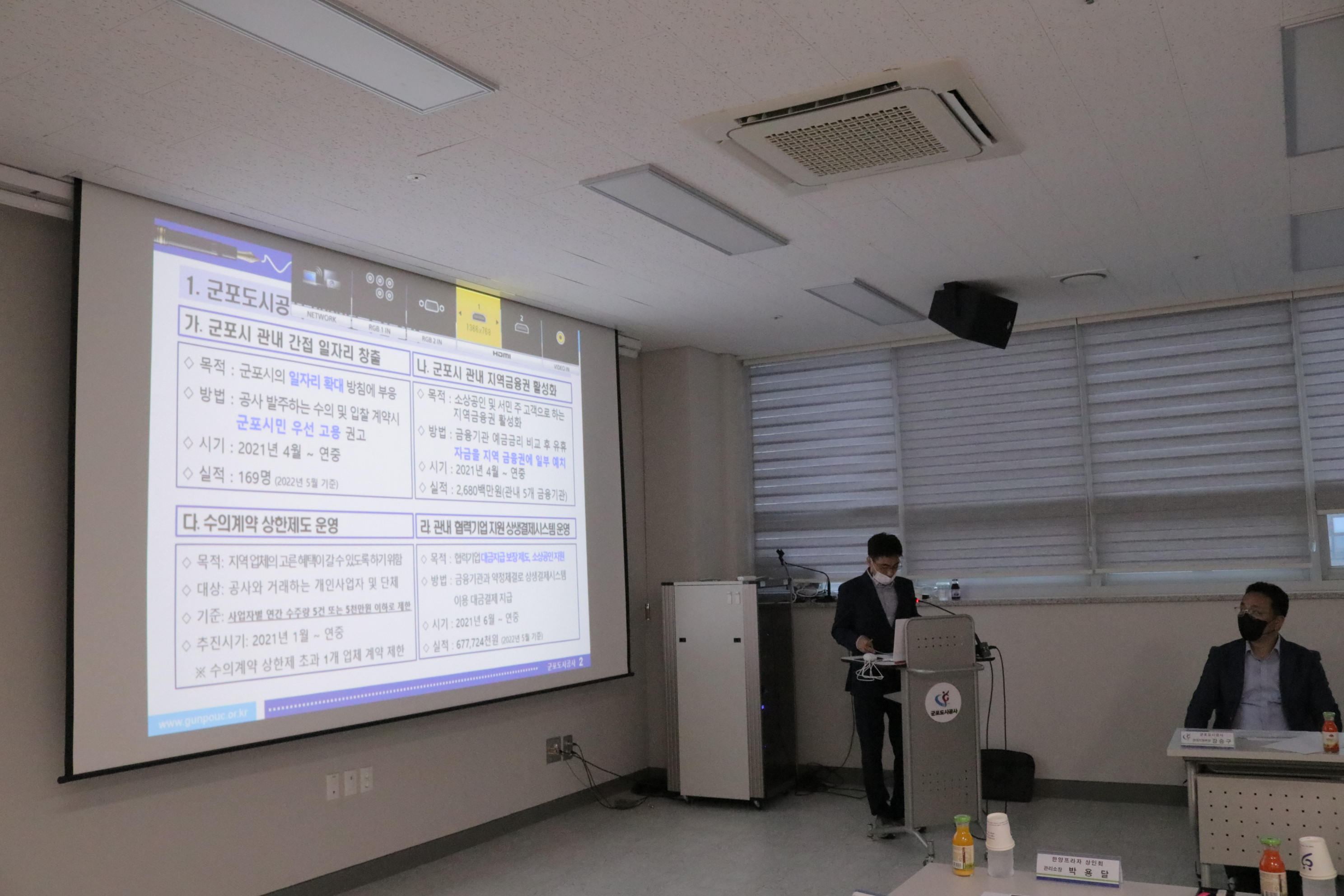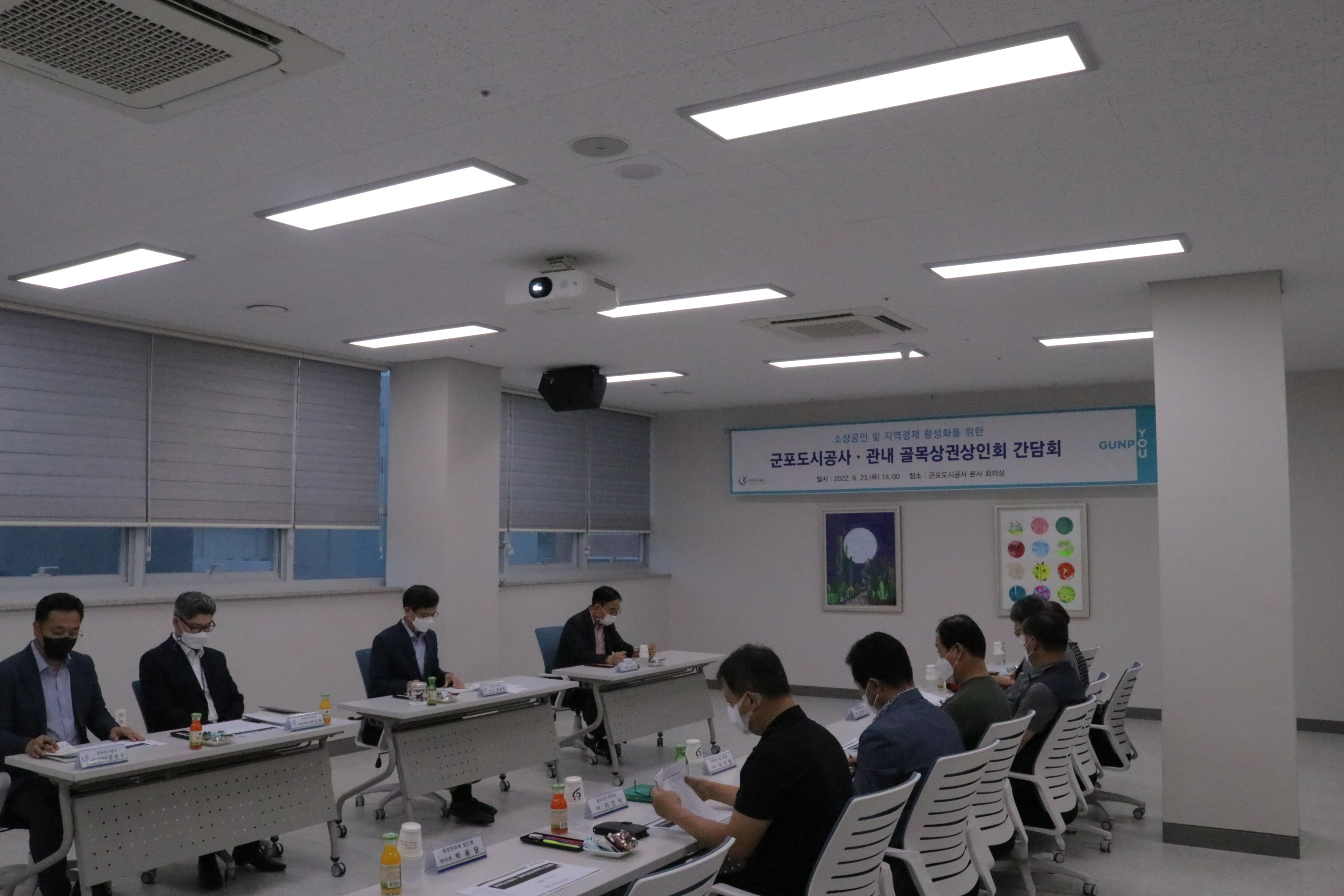 2022-06-23 군포시 관내 골목상권상인회 간담회(2022년 하반기) 작성자 CS담당자 등록일자 2022년 6월 29일 11시 19분 35초 조회 315 2022년 6월 23일군포시 관내 골목상권상인회 간담회 참석인원: 총 12명(공사 5명, 골목상권상인회 7명) 내용: 2022년 상반기 관내 기업 구매 실적 및 하반기 구매계획 설명, 관내 소상공인 판로지원을 위한 애로사항 청취 및 실질적인 지원방안 마련 토론 사진1.JPG [ Size : 839.62KB , Down : 89 ] 미리보기 다운로드 사진2.JPG [ Size : 956.41KB , Down : 83 ] 미리보기 다운로드 사진3.JPG [ Size : 977.31KB , Down : 85 ] 미리보기 다운로드 사진4.JPG [ Size : 926.3KB , Down : 86 ] 미리보기 다운로드 사진5.JPG [ Size : 879.74KB , Down : 90 ] 미리보기 다운로드 목록보기