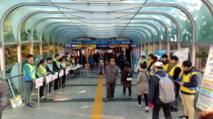 산본역 일대에 현수막과 배너를 설치하고 30여명의 직원들이 함께 캠페인을 실시하였습니다.