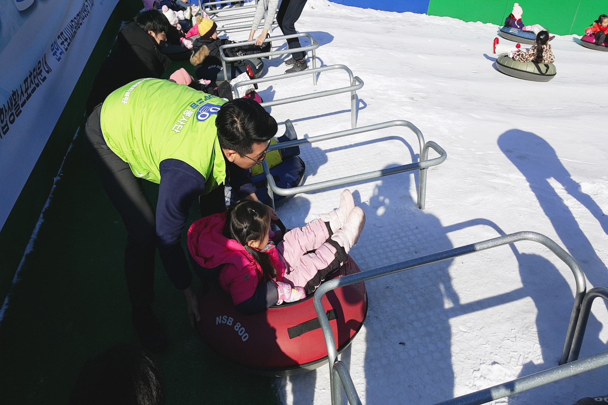 온가족이 함께 즐길 수 있는 눈 얼음 썰매장이 아주 인기였습니다.