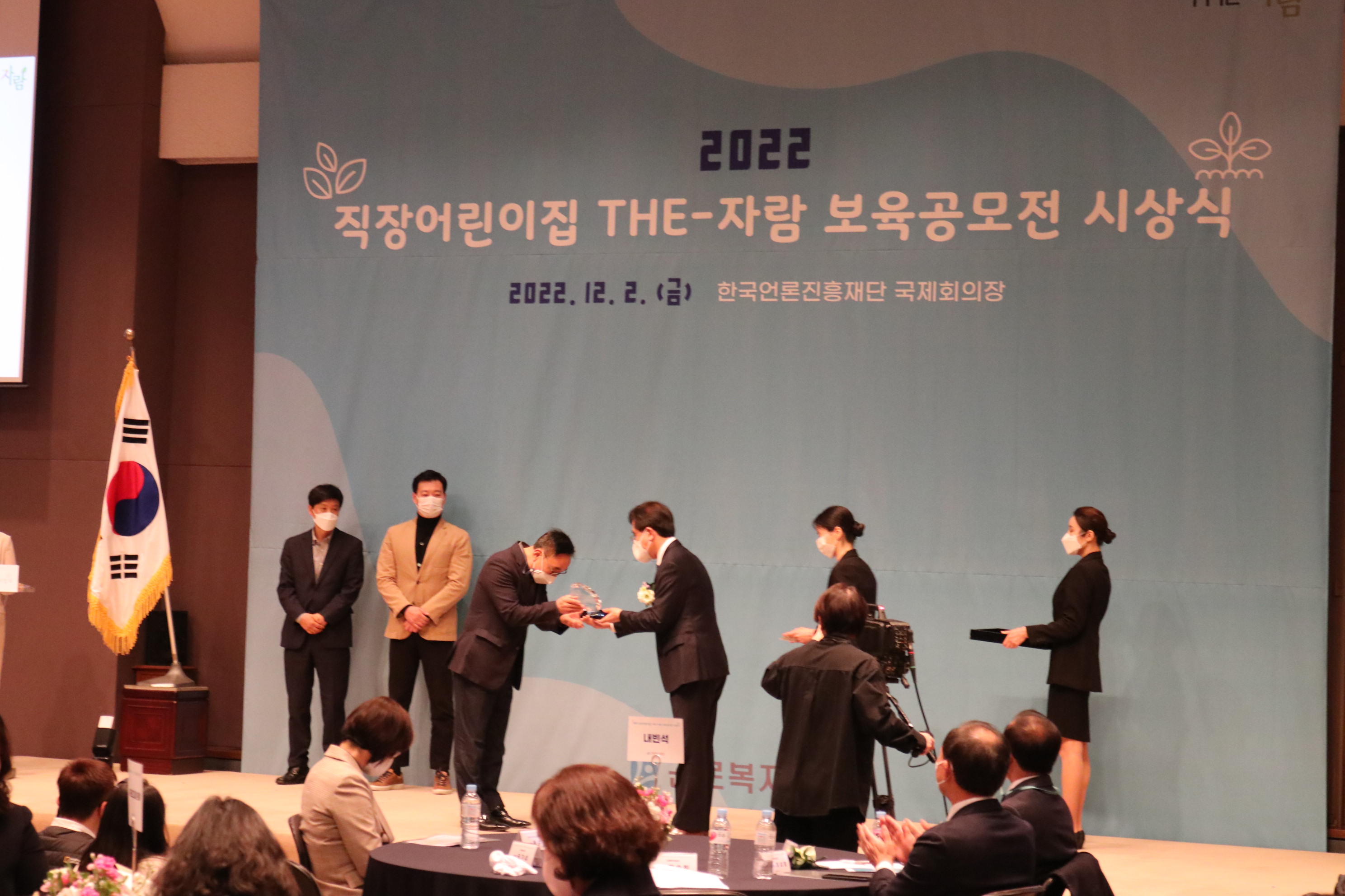 2022-12-2 군포도시공사 ESG경영 실천 상생형 직장어린이집 선정 및 특별 공로상 수상 작성자 CS담당자 등록일자 2023년 1월 3일 15시 42분 23초 조회 350 군포도시공사 'ESG경영 실천 상생형 직장어린이집 선정 및 특별 공로상' 수상!공사는 지난 12월 2일 근로복지공단이 주최하는'2022년 직장어린이집 THE-자람 보육공모전' 시상식에서 공로상을 수상했습니다.공사는 2022년 1월 공동직장(두드림)어린이집을 인계받아 맞벌이 가정의일·가정 양립문화 조성과 아이들의 안전·편의를 위해 안전점검, 시설보수, 프로그램 지원 등 지속적으로 지원해오고 있습니다. IMG_6144.JPG [ Size : 969.15KB , Down : 87 ] 미리보기 다운로드 IMG_6148.JPG [ Size : 952.21KB , Down : 77 ] 미리보기 다운로드 IMG_6155.JPG [ Size : 944.8KB , Down : 83 ] 미리보기 다운로드 IMG_6168.JPG [ Size : 816.58KB , Down : 86 ] 미리보기 다운로드 목록보기