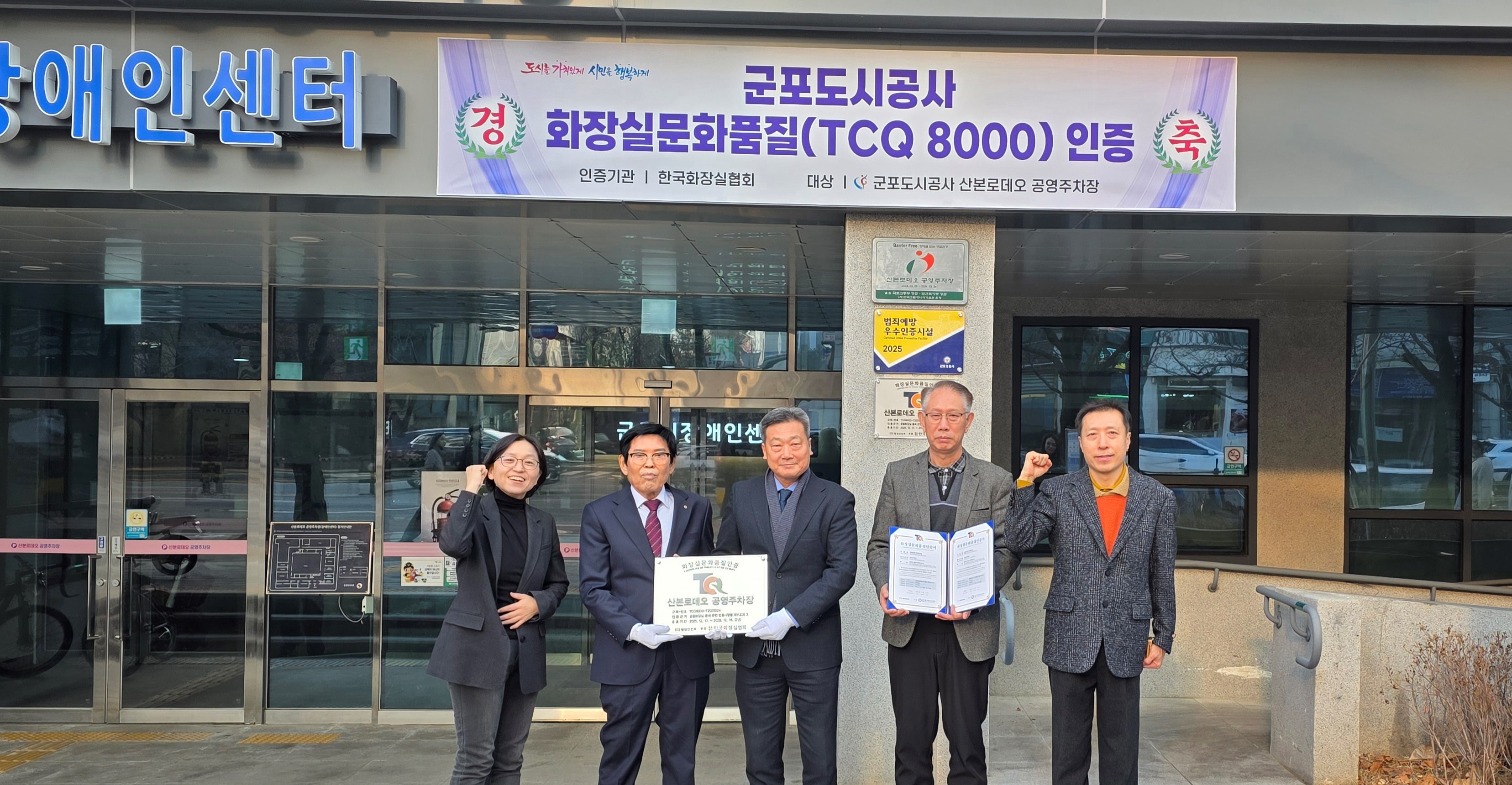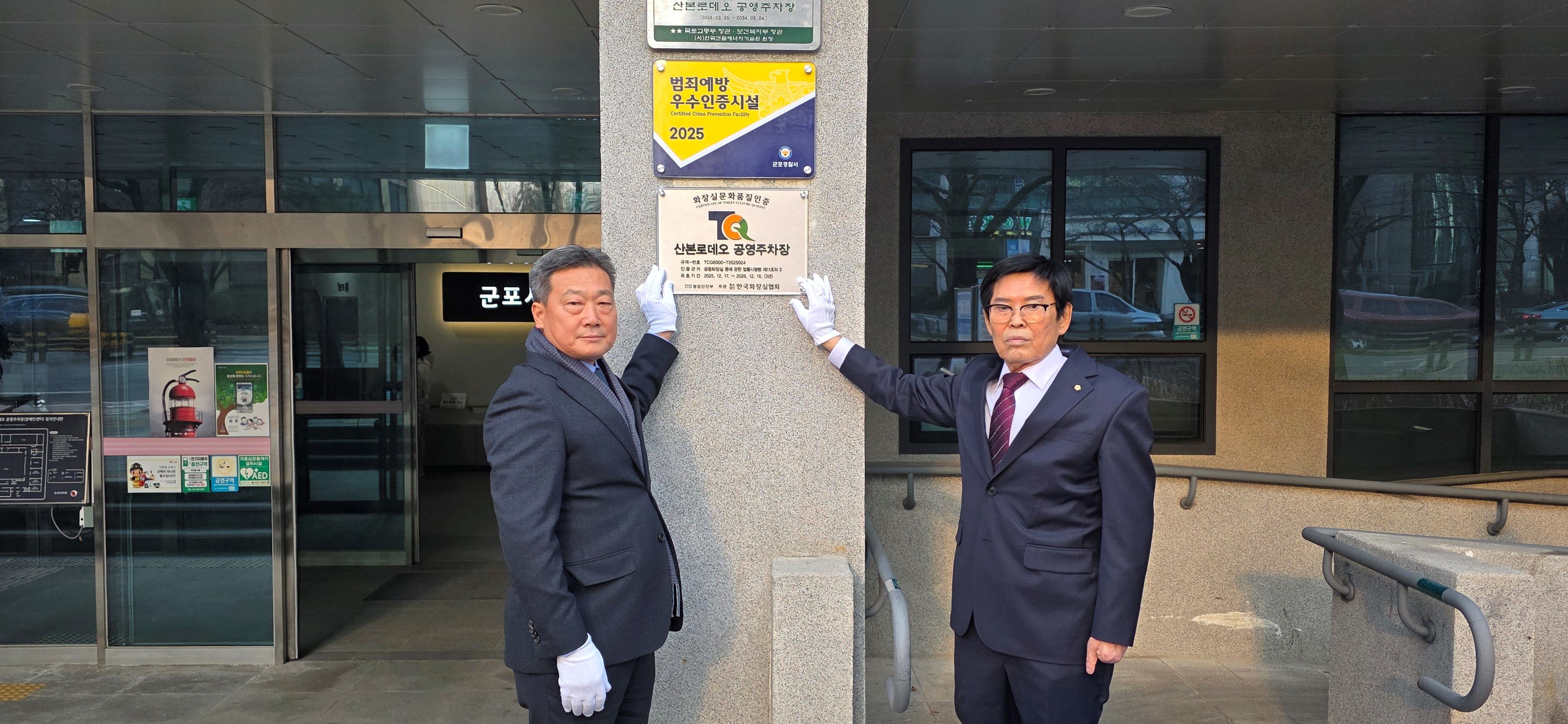 2025-12-17 산본로데오공영주차장 화장실문화품질 인증 작성자 CS담당자 등록일자 2026년 1월 9일 9시 41분 14초 조회 8 산본로데오 공영주차장 화장실 문화품질 인증획득.jpg [ Size : 1005.66KB , Down : 3 ] 미리보기 다운로드 사진(3).jpg [ Size : 1.01MB , Down : 4 ] 미리보기 다운로드 사진(1).jpg [ Size : 1.08MB , Down : 4 ] 미리보기 다운로드 목록보기