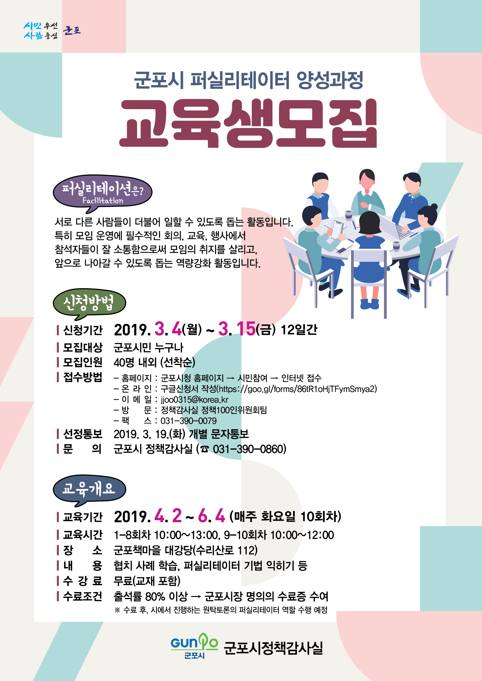 본사 군포시 퍼실리테이터(진행촉진자) 양성과정 교육생 모집 안내