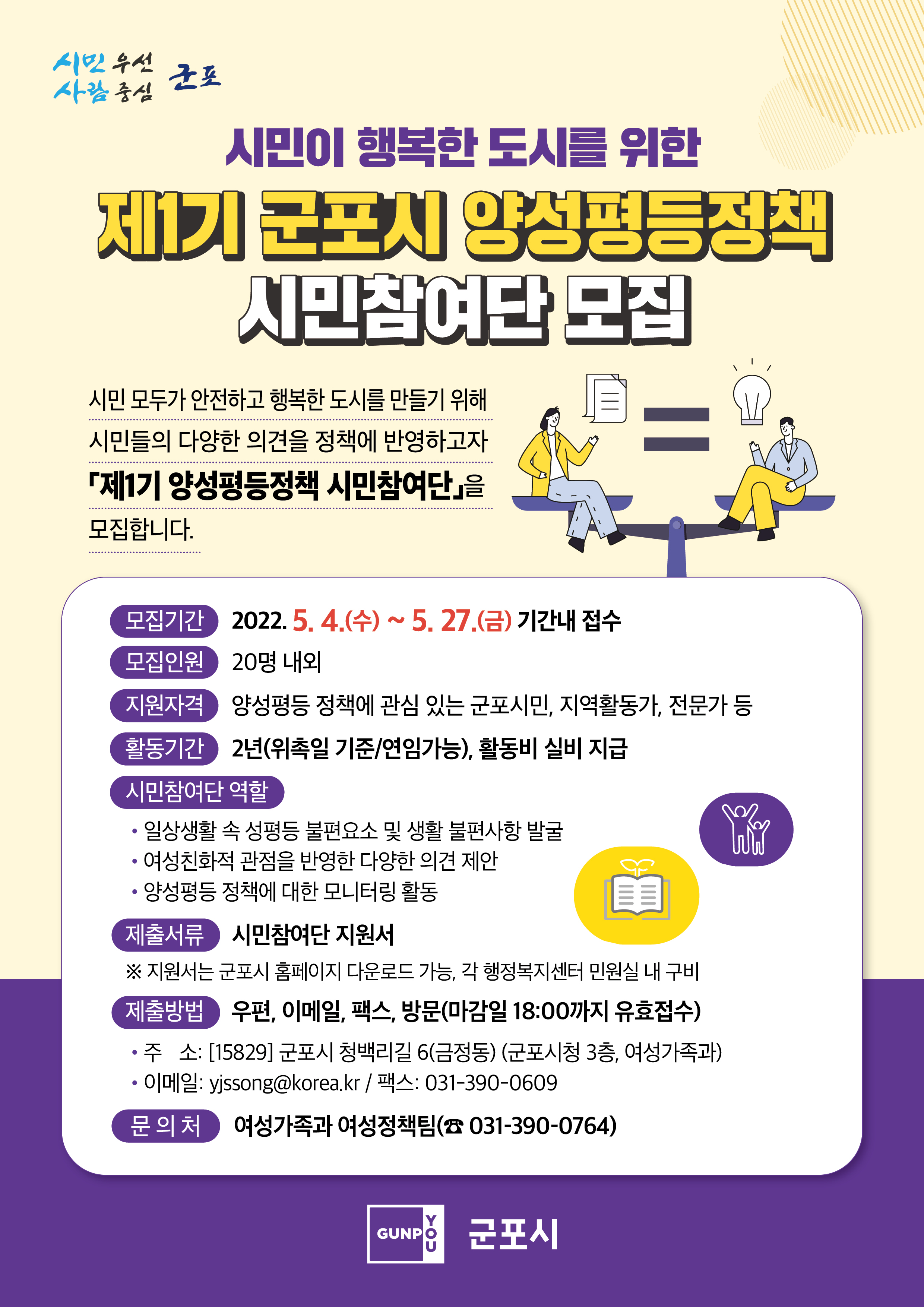 본사 군포시 양성평등정책 시민참여단 모집 홍보