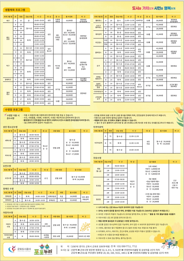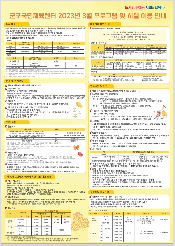 체육레저부 군포국민체육센터 2023년 3월 강습 프로그램 접수 안내