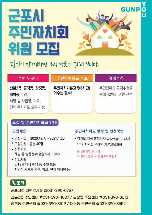 가. 모집대상 : 산본2동, 금정동, 광정동, 대야동 주민자치회 위원 모집