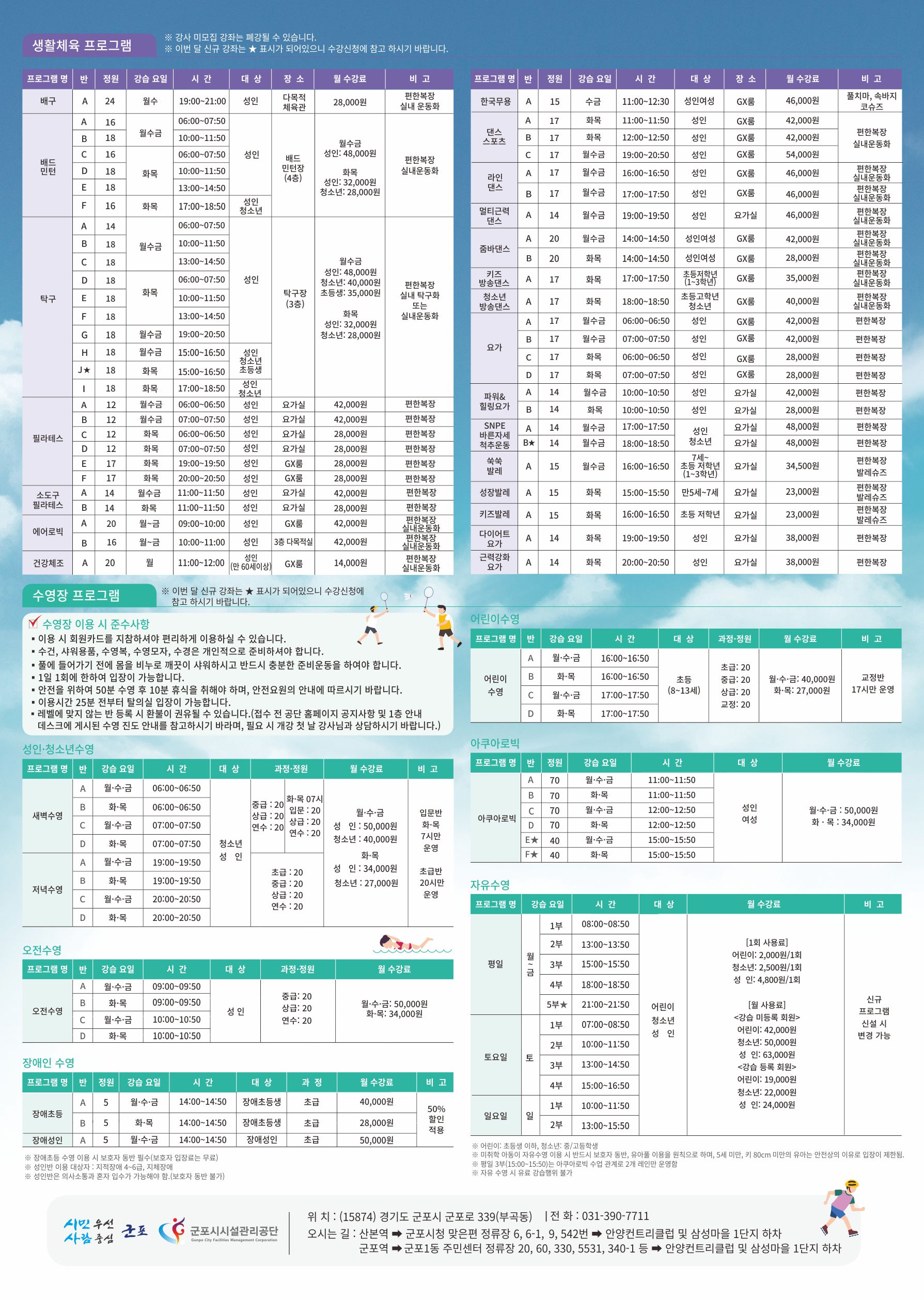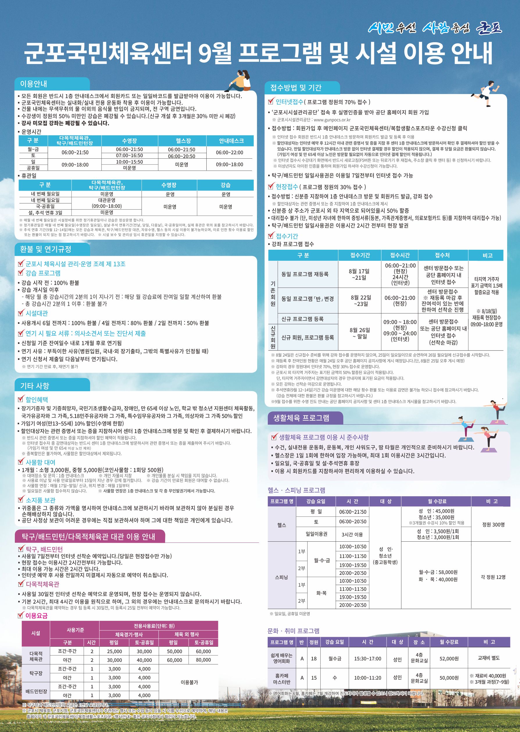 체육레저부 [군포시시설관리공단]군포국민체육센터 9월 프로그램 안내