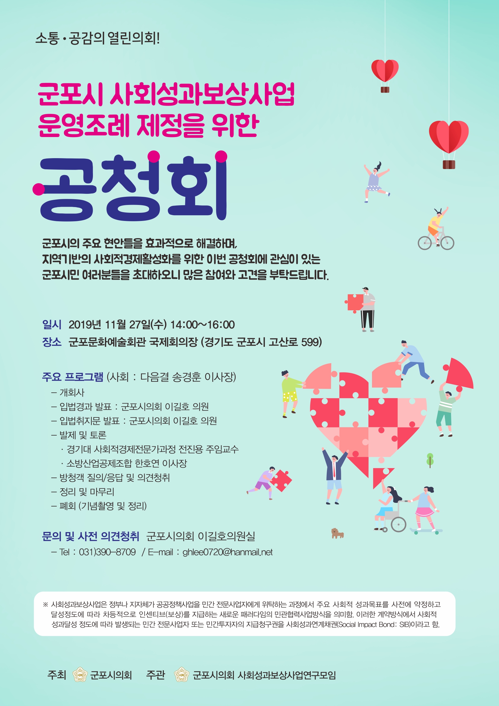 본사 『군포시 사회성과보상사업 운영조례 제정을 위한 공청회』 개최 안내