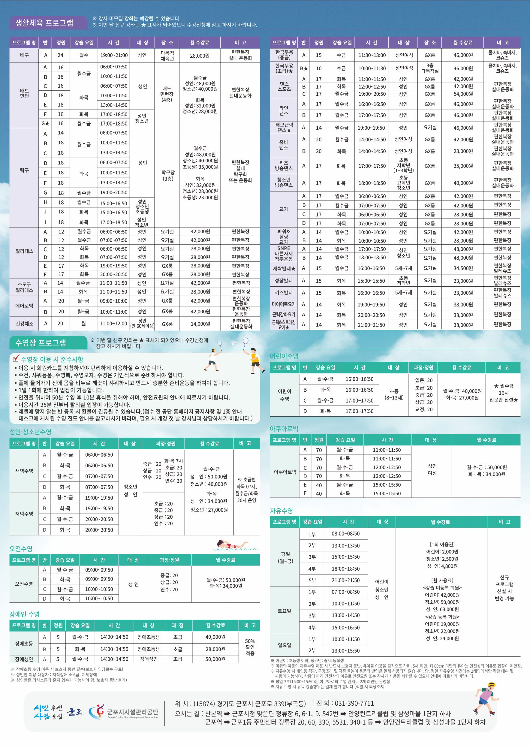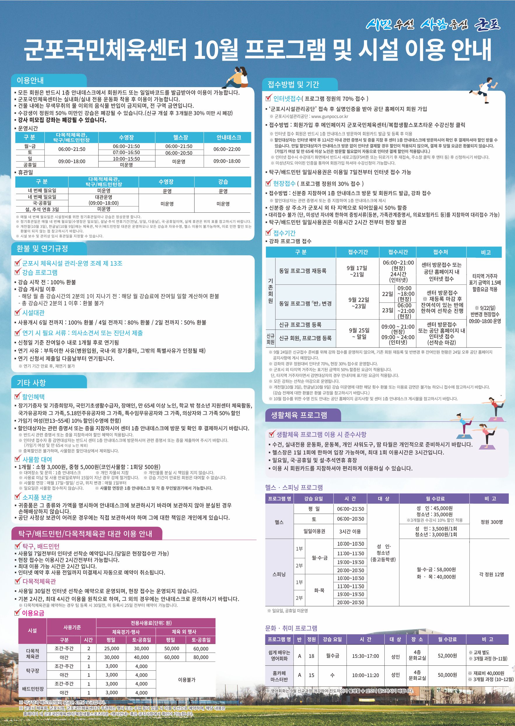 체육레저부 [군포국민체육센터]군포국민체육센터 10월 프로그램 안내