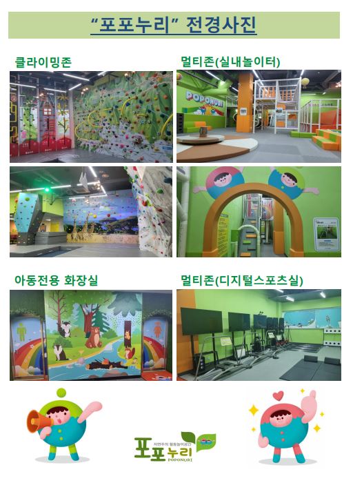 운영시설: 실내 놀이터, 그물놀이터, 디지털 스포츠실(멀티존)/실내 암벽(클라이밍존)
