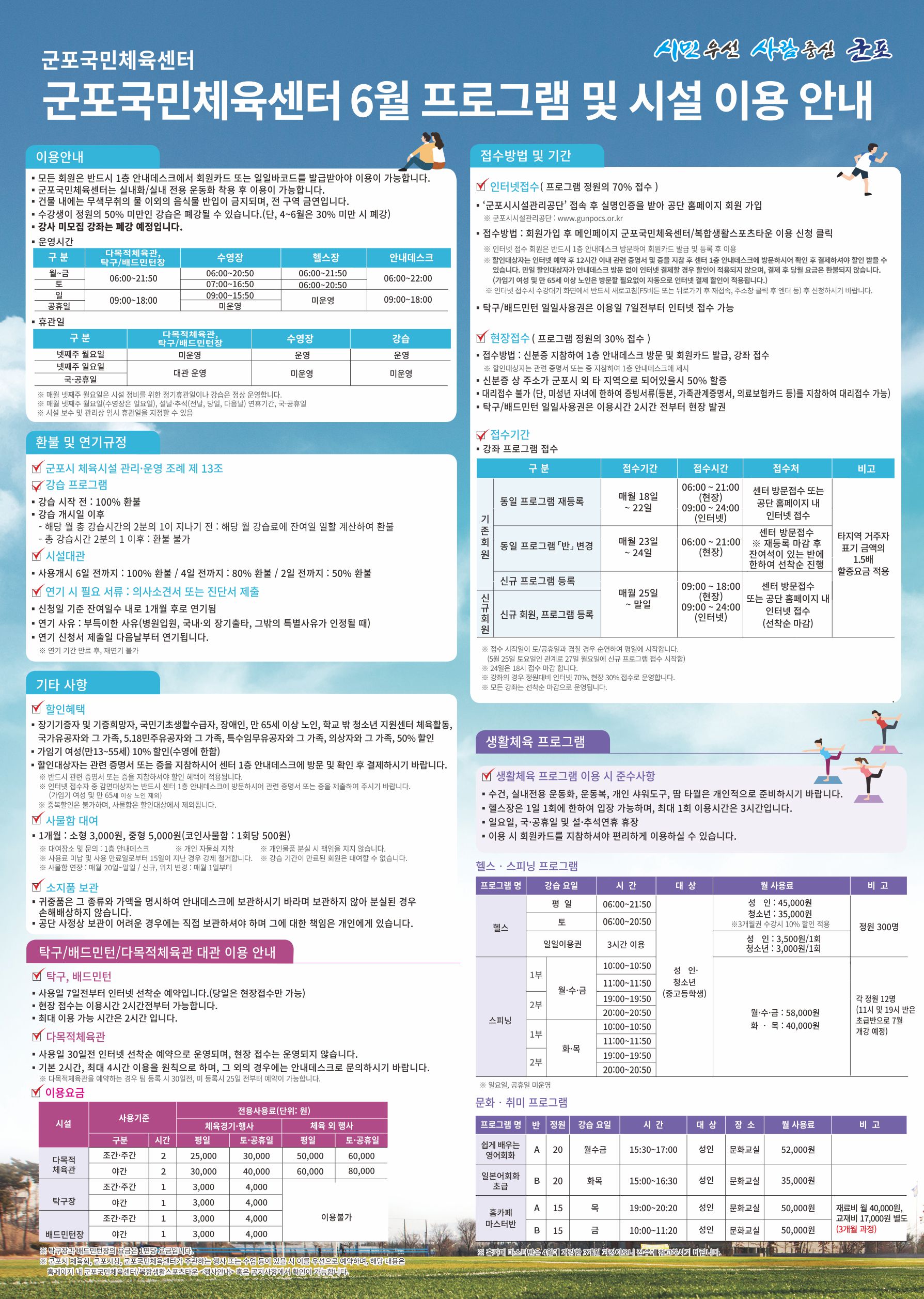 체육레저부 [군포국민체육센터]국민체육센터 6월 프로그램 안내