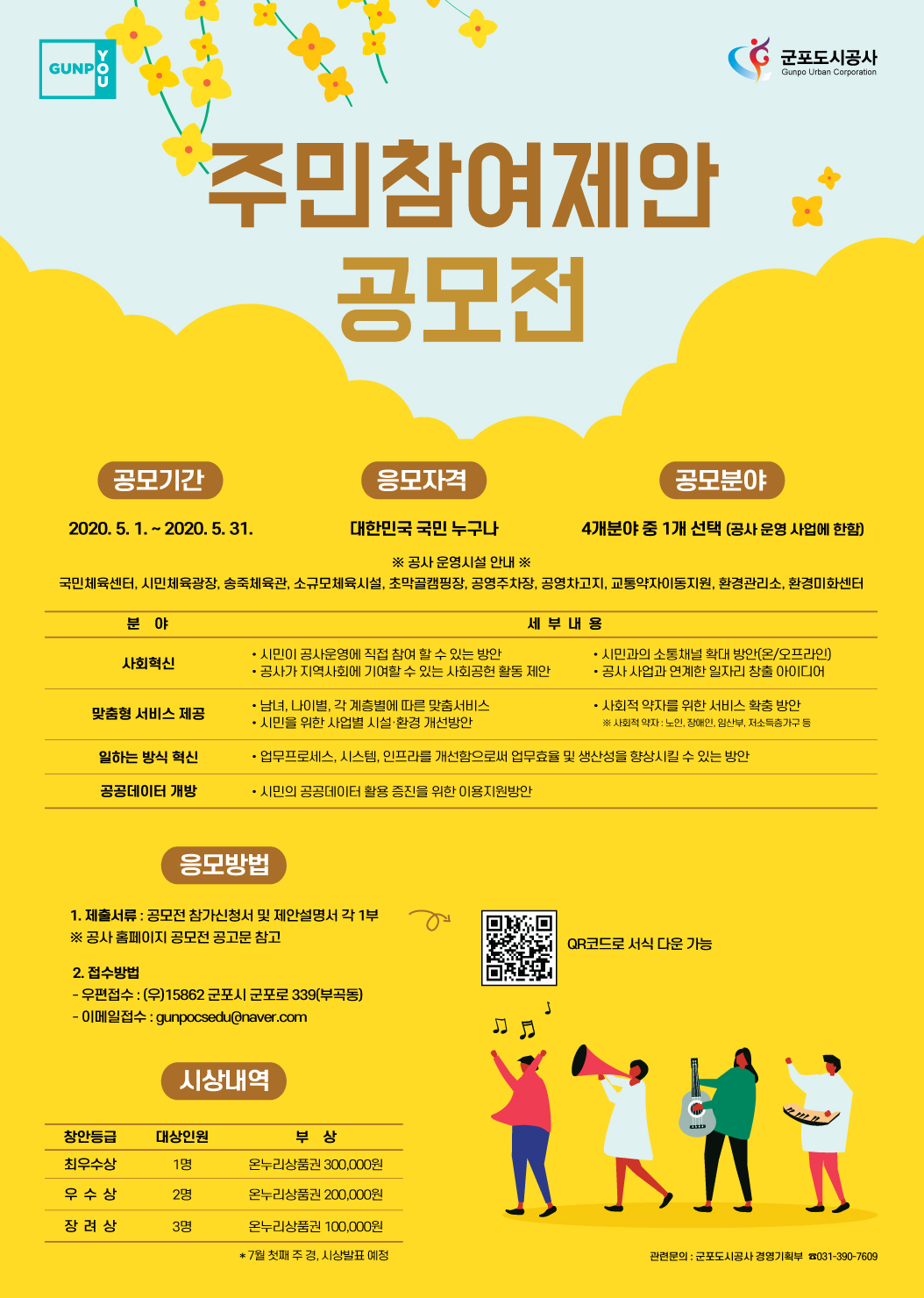 주민의 창의적인 의견과 고안을 장려 계발하고 공사 경영에 적극 반영하여 효율적으로 공사를 운영하고자 다음과 같이 제안을 공모합니다.
