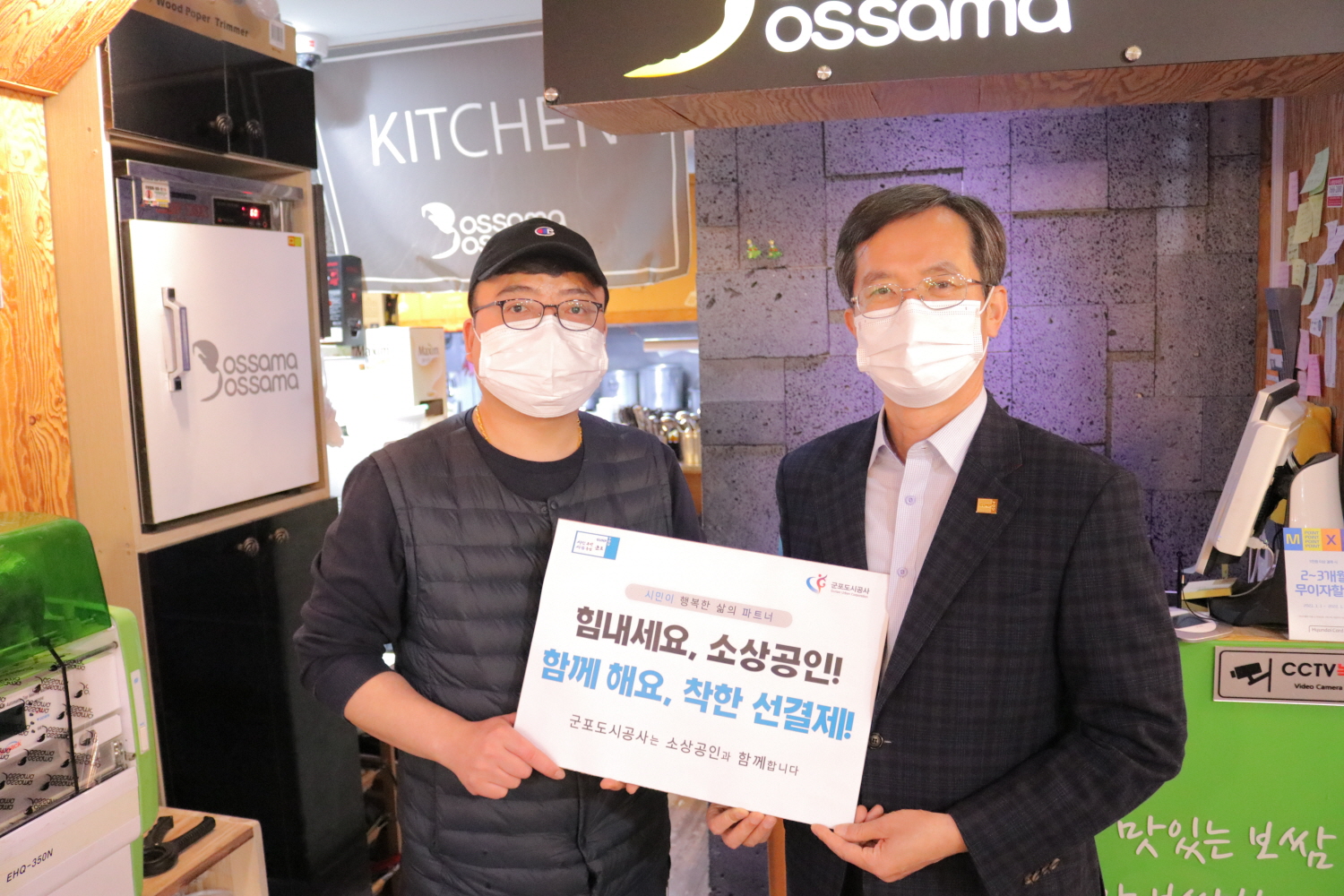 군포도시공사(사장 원명희)는 지난 1월 군포시장(시장 한대희)으로부터 지명을 받아 관내 업체 및 식당을 대상으로 ‘힘내세요, 소상공인! 함께해요, 착한 선결제!’ 캠페인을 펼쳤다.