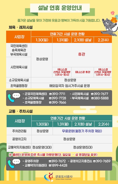 군포도시공사 설 연휴 공영주차장 무료개방, 교통약자차량 정상 운영