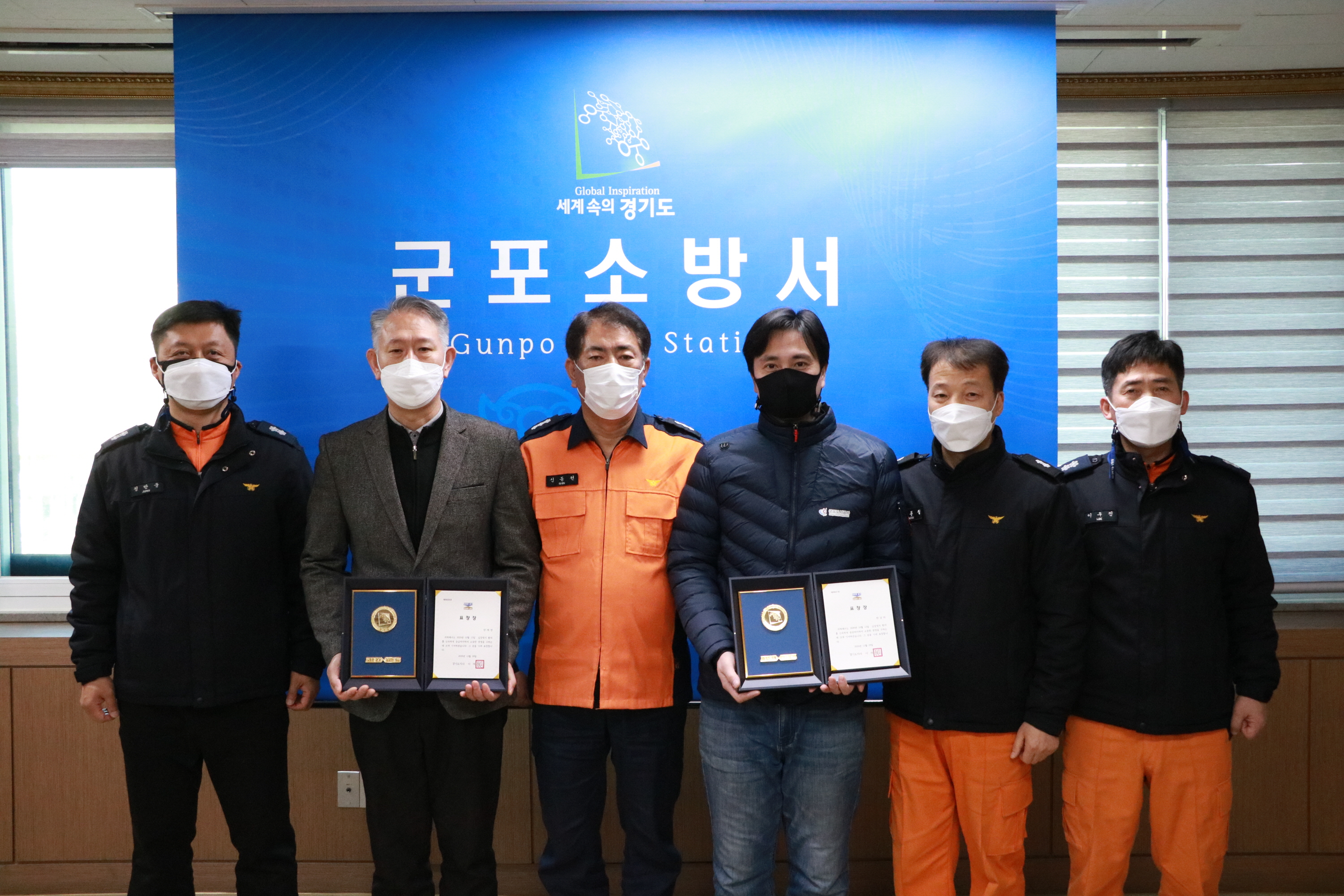 군포도시공사(사장 원명희)는 지난해 심폐소생술로 응급 환자를 살려낸 직원 2명이 지난 5일 군포소방서에서 하트세이버 증서를 전달받았다.