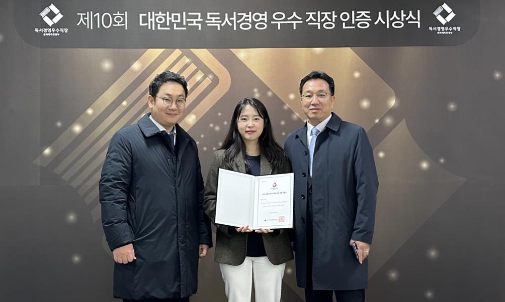 ‘제10회 독서경영 우수직장 인증사업 시상식’에서 2년 연속 독서경영 우수직장 인증을 획득했다.