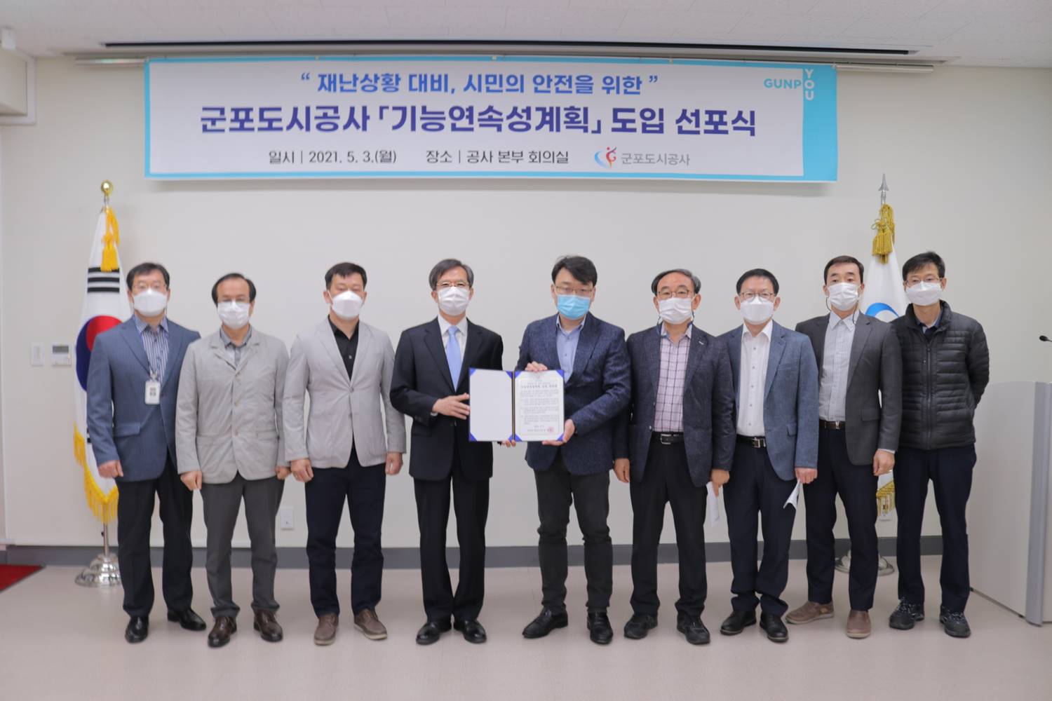 군포도시공사(원명희 사장)가 지난 3일 공사 임직원이 참석한 가운데 재난상황 대비, 시민의 안전을 위한 ′기능연속성계획 수립 선포식′을 개최했다고 6일 밝혔다.