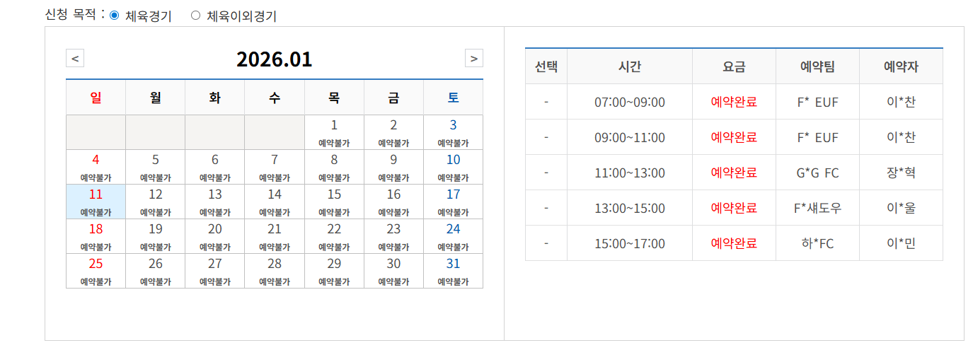 스포츠레저부 【답변완료】 축구장 예약 민원