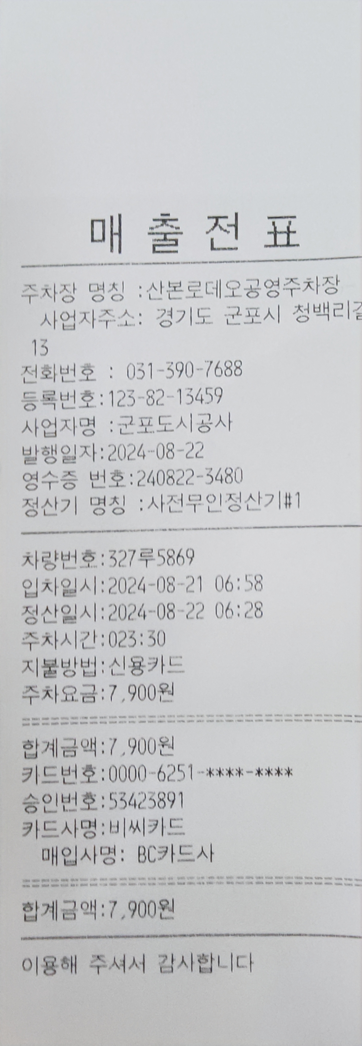 안녕하세요. 우선 공영주차장 이용하여 주셔서 감사합니다.