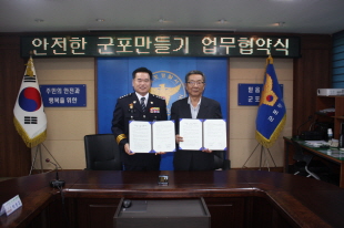 군포시시설관리공단-군포경찰서 MOU체결 작성자 등록일자 2018년 10월 8일 16시 24분 49초 조회 721 안전한 군포시를 만들기 위해 공단과 군포경찰서가 힘을 합쳤습니다.양 기관 기관장들과 관계자들이 한 자리에 모여안전문화 확산 및 상호 교류협력을 위한 결의를 다졌습니다.방범활동, 교통안전캠페인, 지역사회공헌활동 등 다양한 행사에 함께 협력하여안전한 군포, 살기좋은 군포를 만드는데 적극 동참하겠습니다! 메인.JPG [ Size : 61.2KB , Down : 182 ] 미리보기 다운로드 목록보기