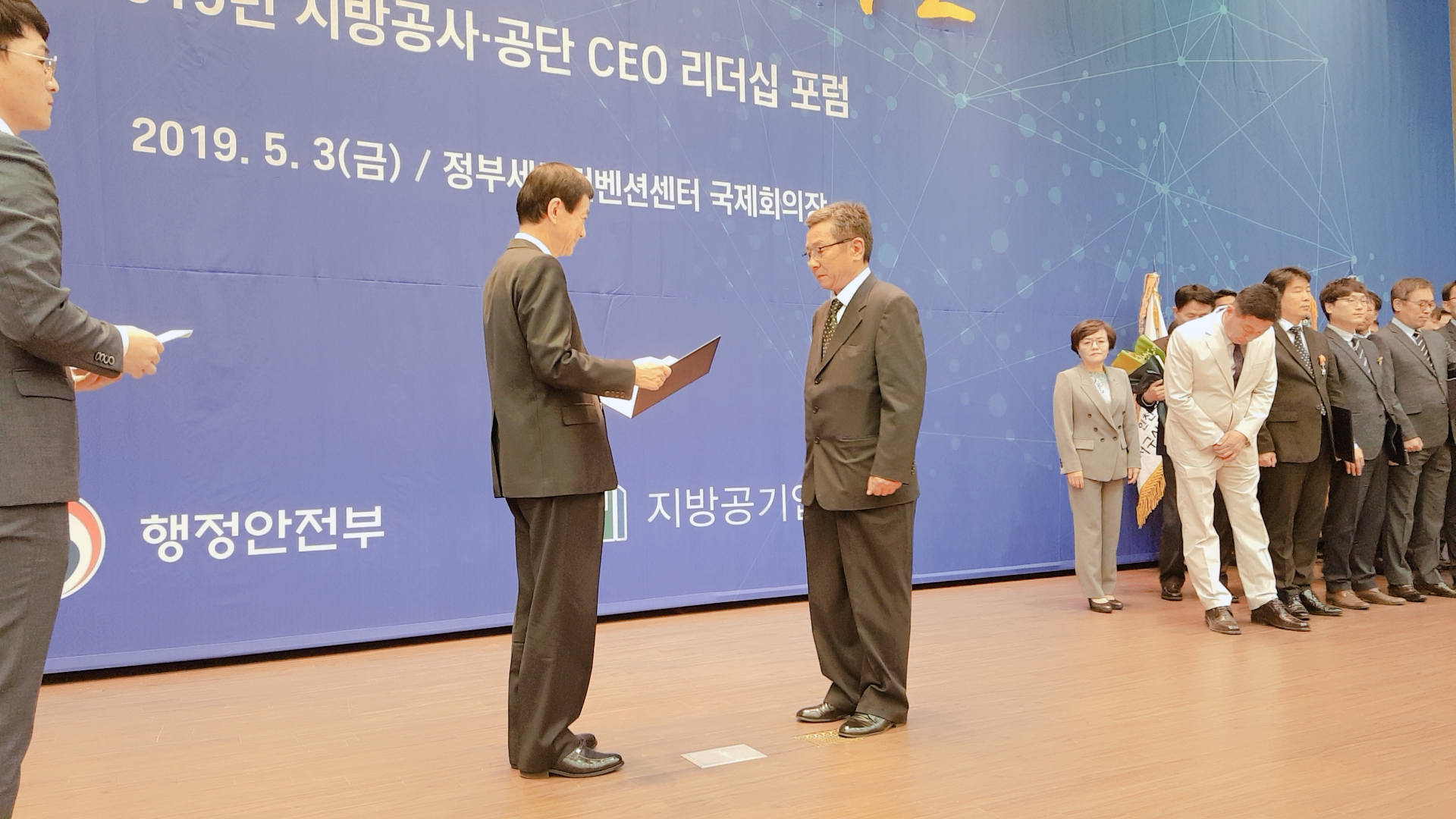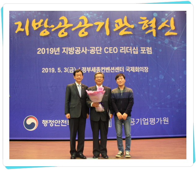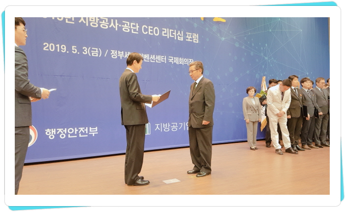 2018년도 지방공기업 발전 유공기관 선정 행정안전부 장관 표창 수상(19.5.3.)