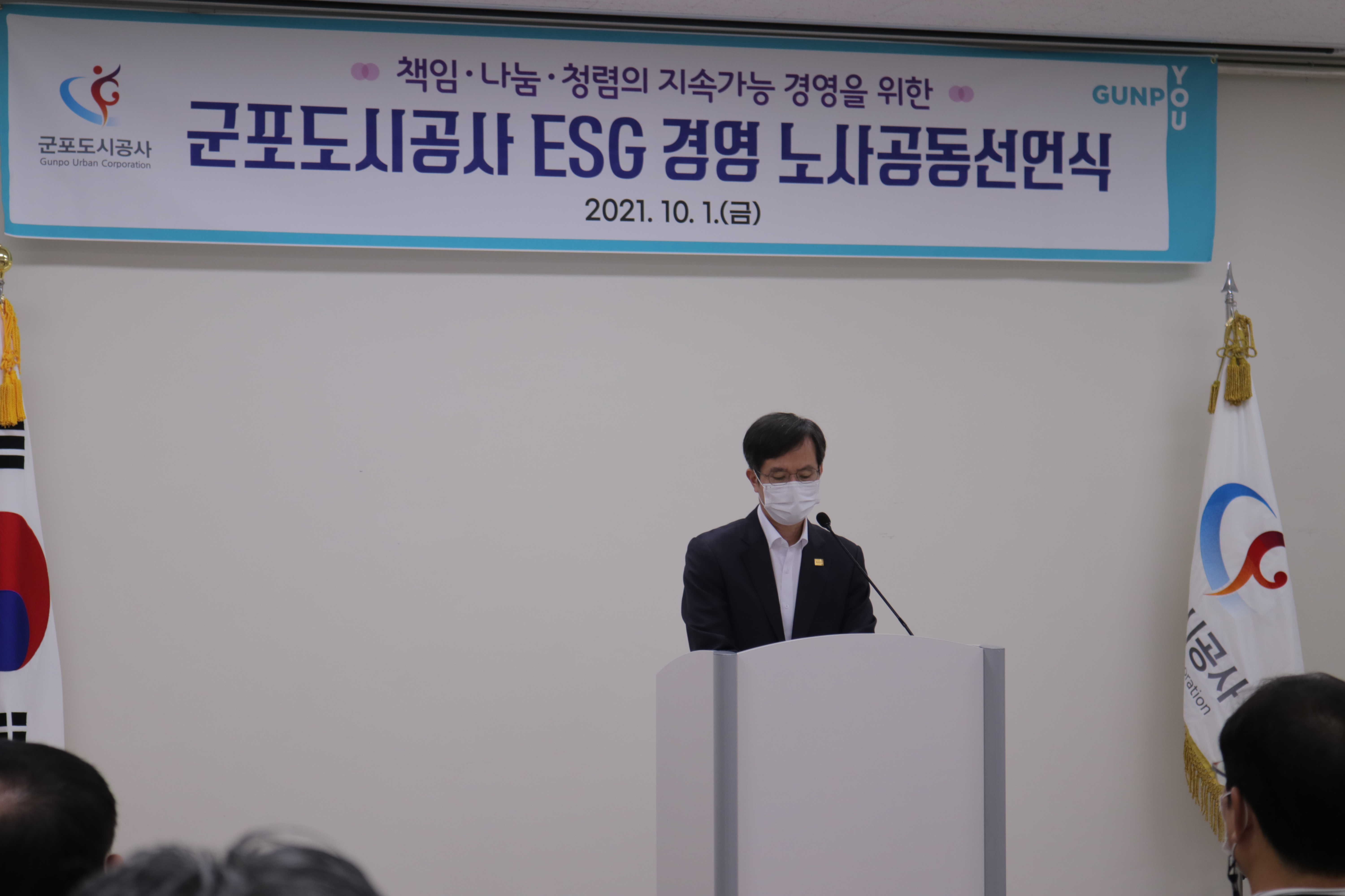 군포도시공사는 책임 나눔 청렴의 지속가능한경영을 실천하고자 ESG노사공동 선언식을 개최했습니다.