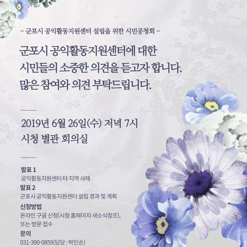 본사 [군포시 공익활동지원센터 설립 추진] 시민공청회 개최 안내