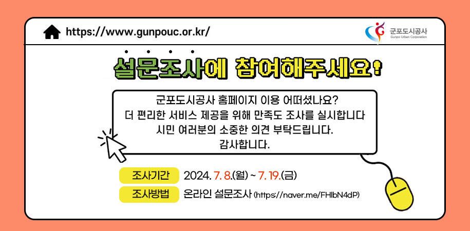 본사 군포도시공사 홈페이지 만족도 조사 실시