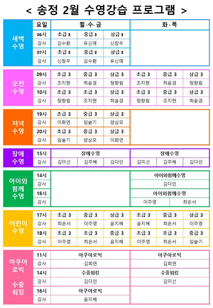 체육관리부 [송정복합체육센터] 2025년 2월 강습 프로그램 일정 및 회원모집 안내