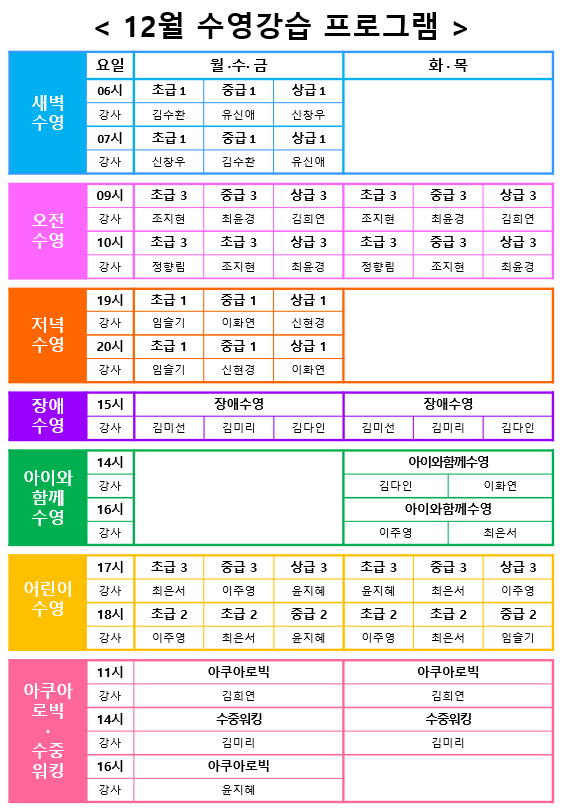 체육관리부 [송정복합체육센터] 2024년 12월 강습 프로그램 일정 및 회원모집 안내