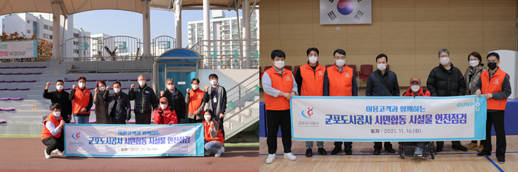 군포도시공사(원명희 사장)는 11월 16일 체육시설 이용고객과 함께하는 시설물 안전점검을 통해 장애물 없는 환경 만들기를 실시했다고 밝혔다.